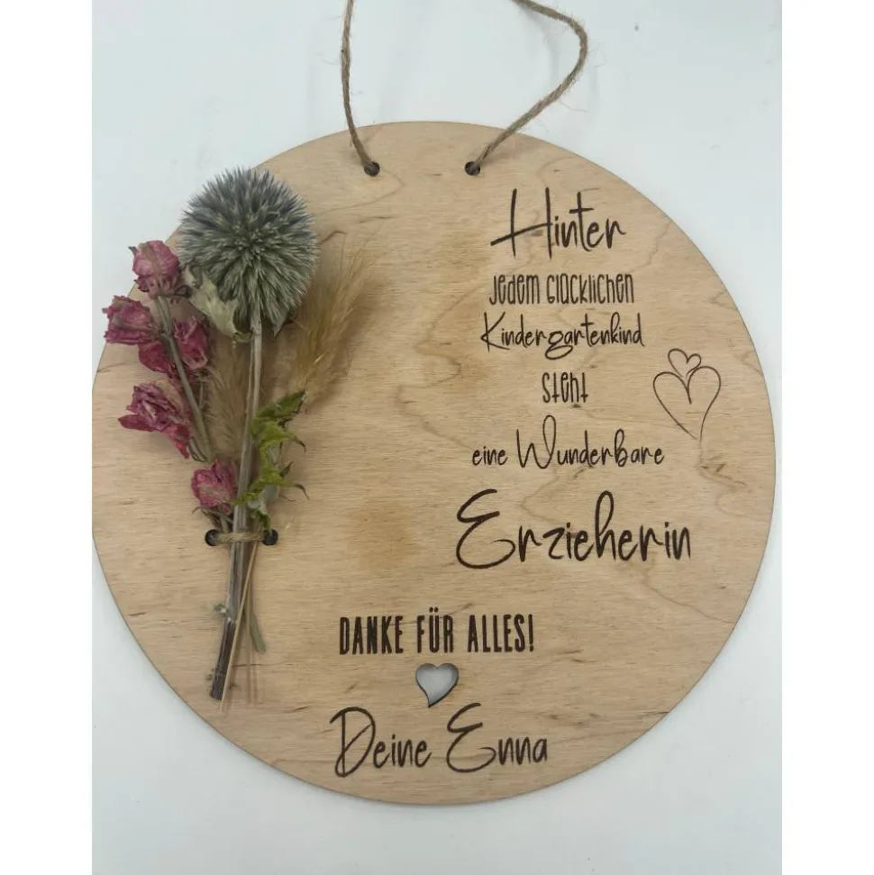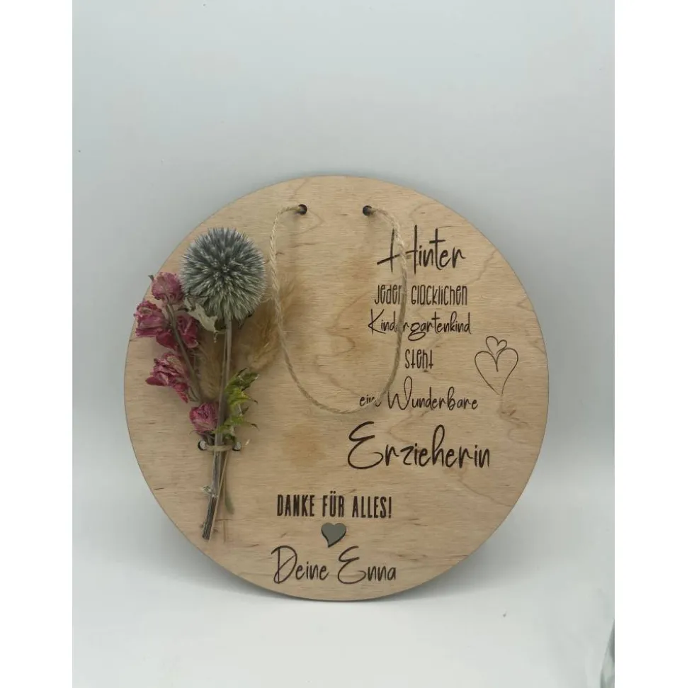 Suchen Sie ein einzigartiges Abschiedsgeschenk für Ihren Erzieher oder Lehrer? Diese personalisierte Holzscheibe mit einer individuellen Gravur ist das perfekte Geschenk. Zeigen Sie Ihre Wertschätzung mit dieser Originellen Geschenkidee. Machen Sie den Abschied unvergesslich und sagen Sie danke auf ganz besondere Weise.
