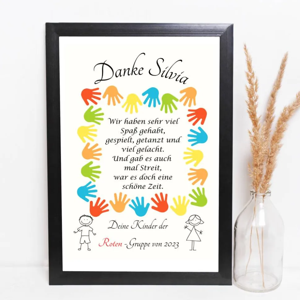 Für die Kindergärtnerin als Urkunde oder Poster zum Einrahmen als Wanddekoration und Geschenkidee.