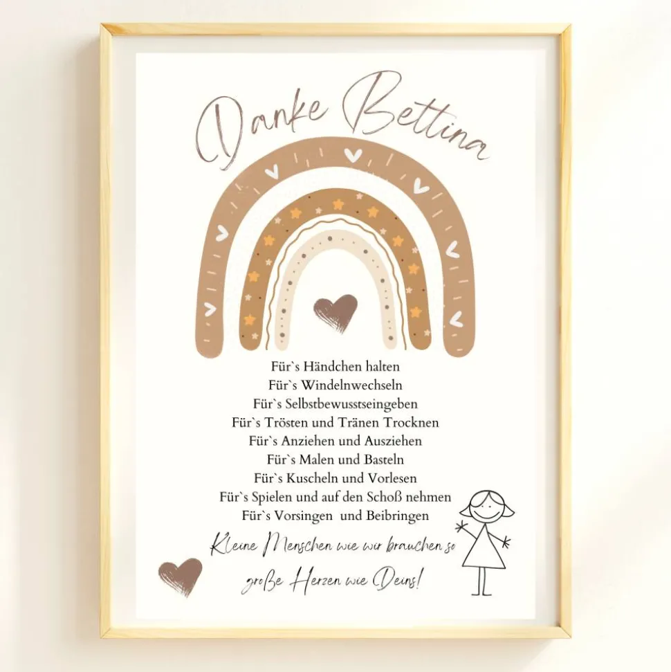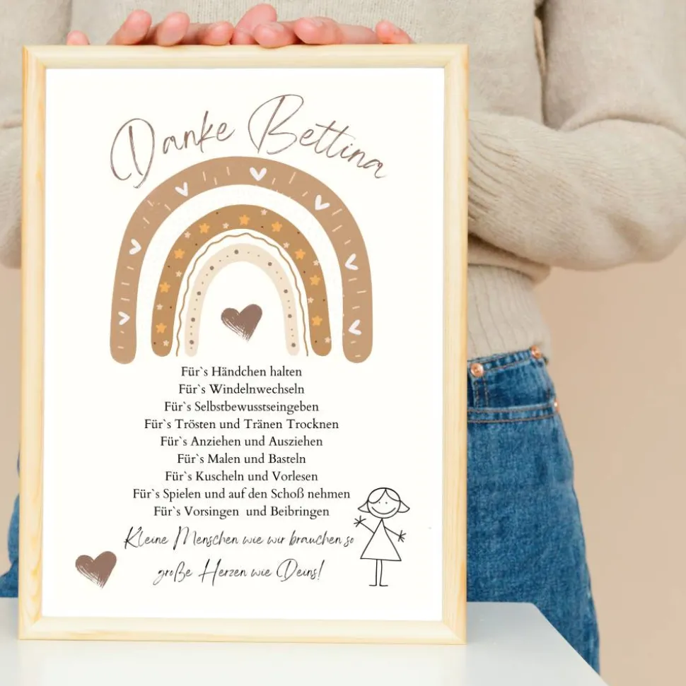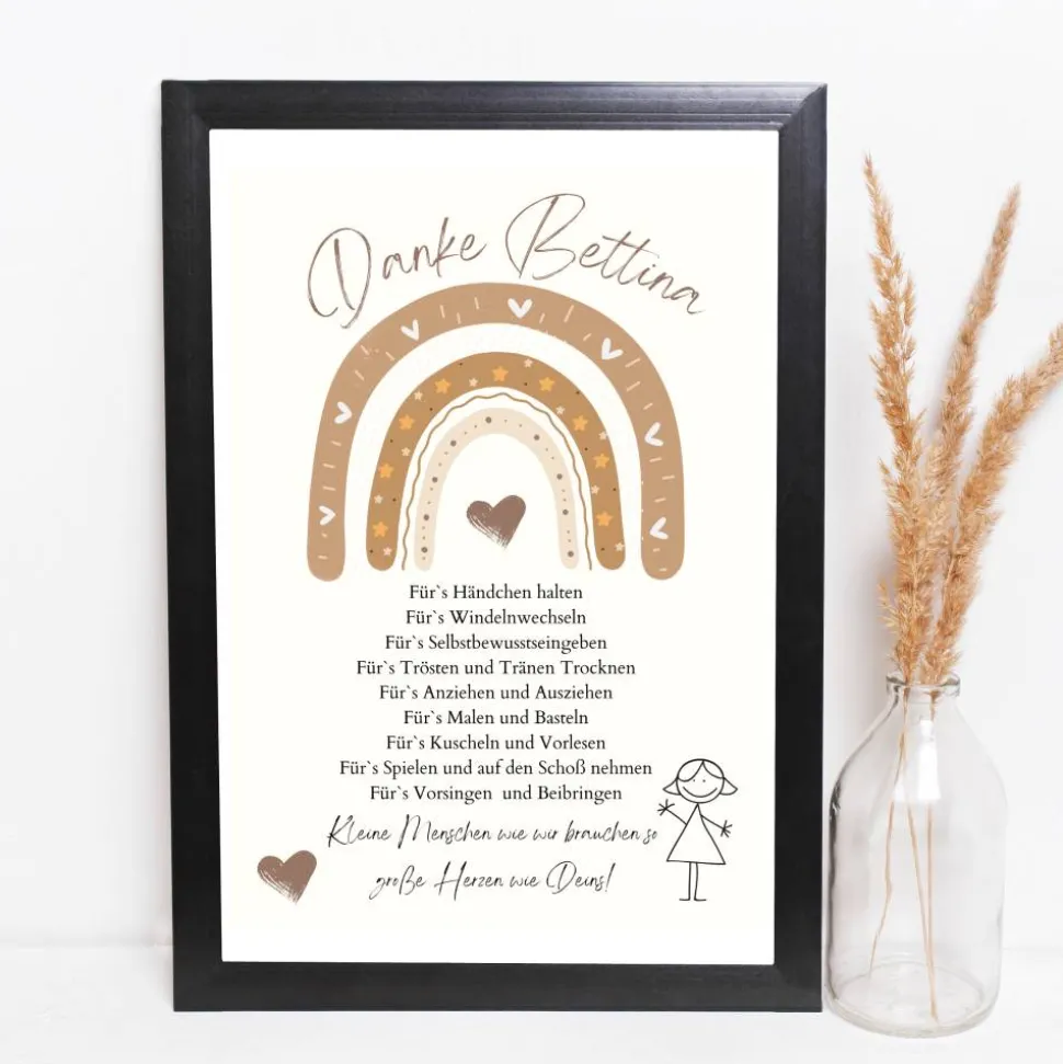Abschiedsgeschenk Erzieherin personalisiert Herz grün | Poster Urkunde | Geschenk Kindergarten Danke Regenbogen