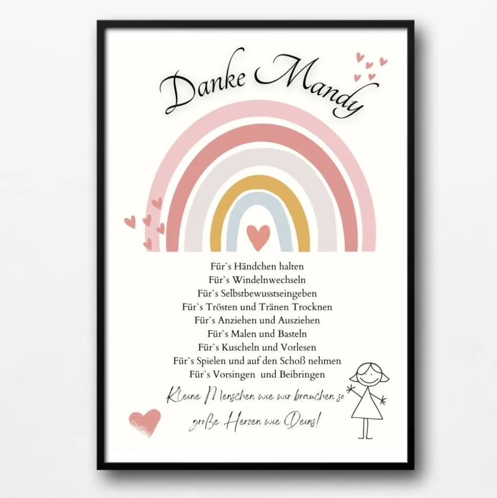 Für die Kindergärtnerin als Urkunde oder Poster zum Einrahmen als Wanddekoration und Geschenkidee.