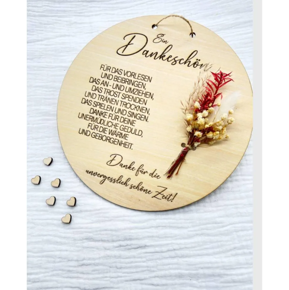 ❤️Ob zum Kindergartenabschluss, als Weihnachtsgeschenk oder einfach als liebevolles Dankeschön zwischendurch – diese dekorative Holzscheibe mit Spruch und Trockenblumen ist ein Geschenk, das von Herzen kommt und lange Freude bereitet.