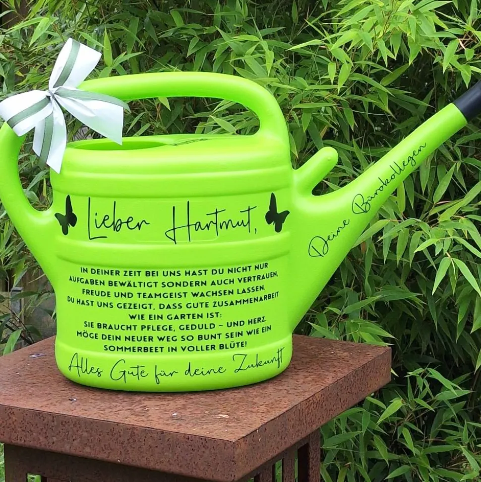 Diese Abschieds-Gießkanne ist mehr als nur ein Geschenk – sie ist eine bleibende Erinnerung an gemeinsame Zeit und ein Zeichen echter Wertschätzung.