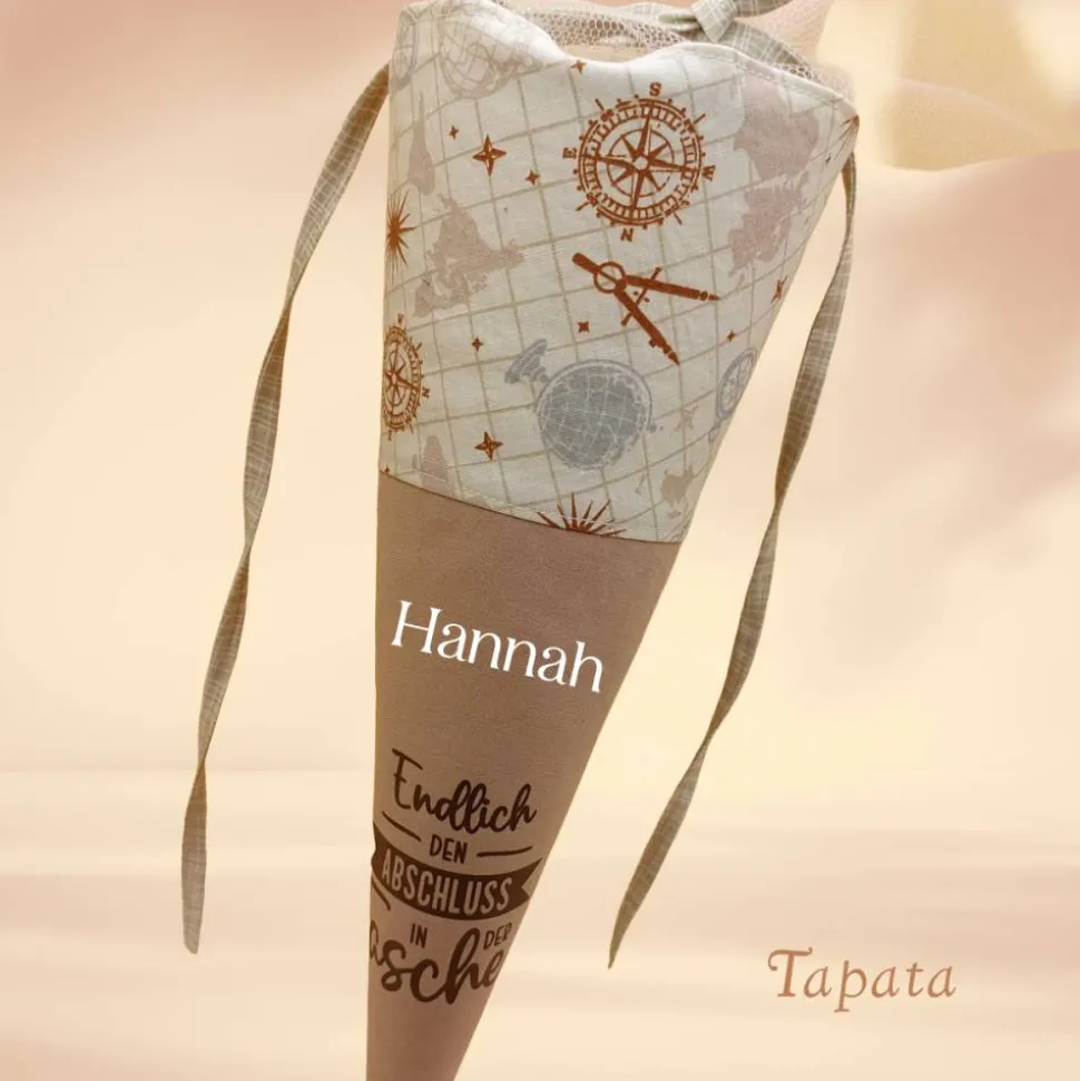 ➡ Namenswunsch: Auf Wunsch kann die Schultüte mit dem Namen oder den Titel (z.B. Dipl., Master oder Bachelor) des Absolventen versehen werden. Bitte geben Sie in das Feld Personalisierungswünsche den Wunschtext ein. Max. 20 Zeichen. Je nach Länge wird die Schriftgröße angepasst..