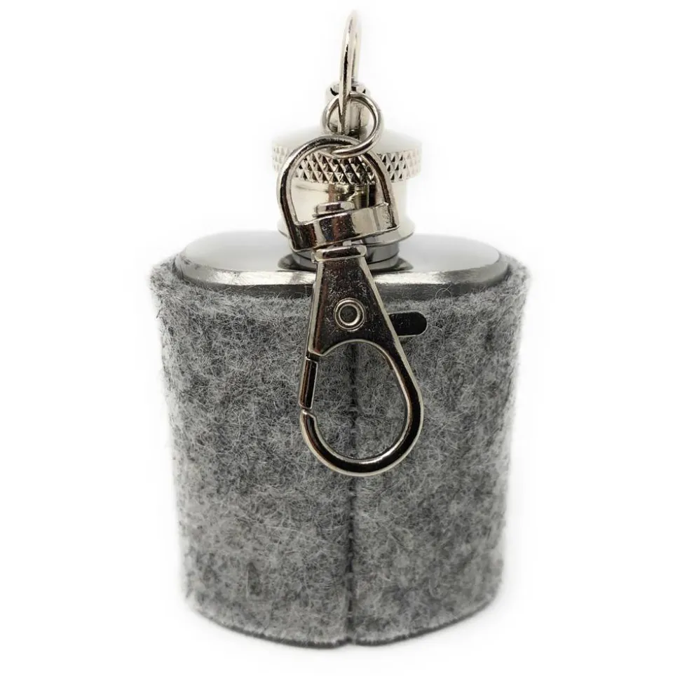 Der Flachmann besteht aus Edelstahl und hat ein Fassungsvermögen von ca. 30 ml (1 oz).