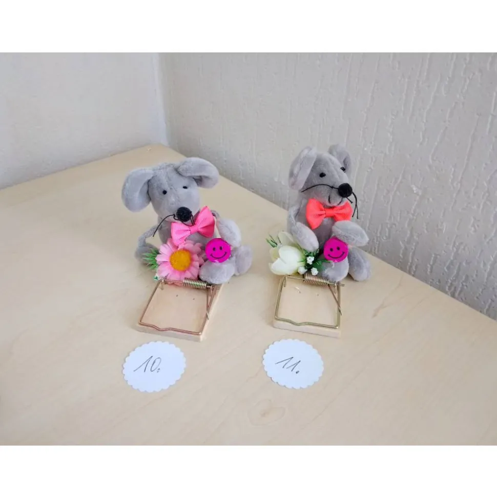 Diese liebevoll dekorierte Mausefalle eignet sich hervorragend, um Geldscheine oder Gutscheine originell zu überreichen. Einfach den Geldschein vorne in die Falle klemmen oder im beiliegenden Briefumschlag verstauen – ein echter Hingucker, der garantiert für Gesprächsstoff sorgt!