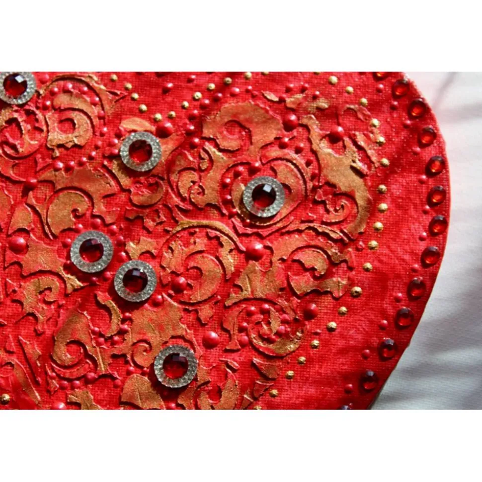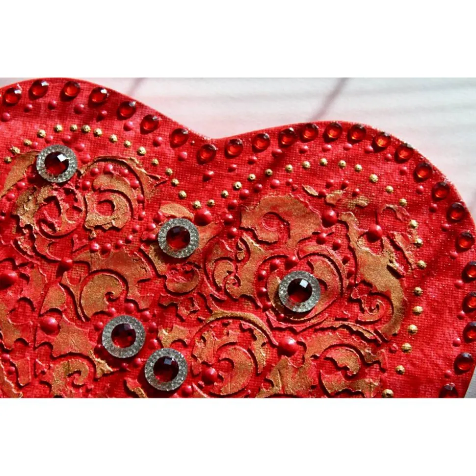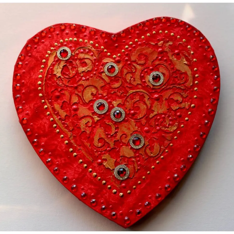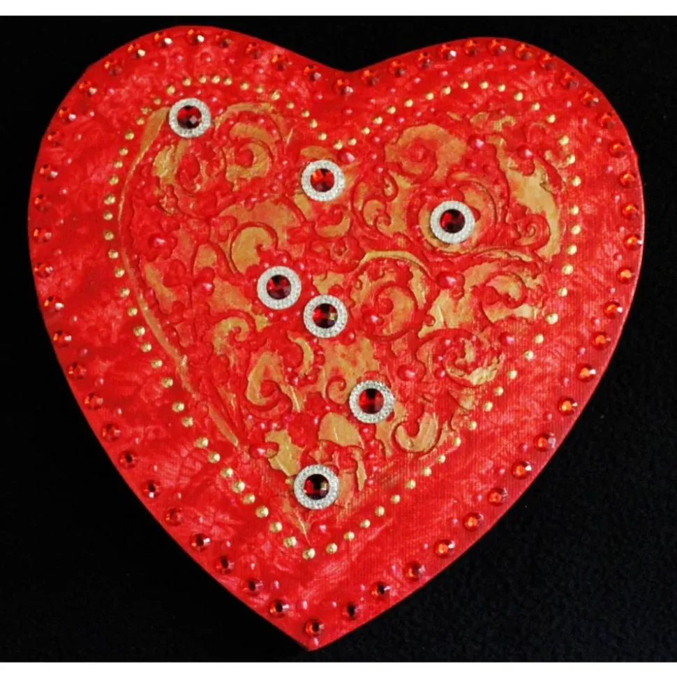 Minibild auf einem herzförmigen Keilrahmen. Tolle Effekte durch die Verwendung von Modelliermasse und Glitzerelementen.
