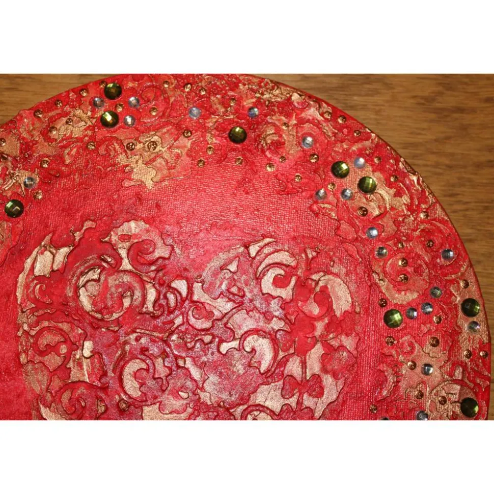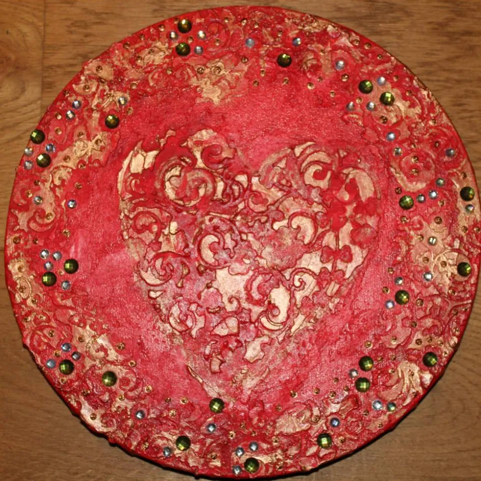 Acrylbild auf einem runden Keilrahmen. Tolle Effekte durch die Verwendung von Modelliermasse und Glitzerelementen.