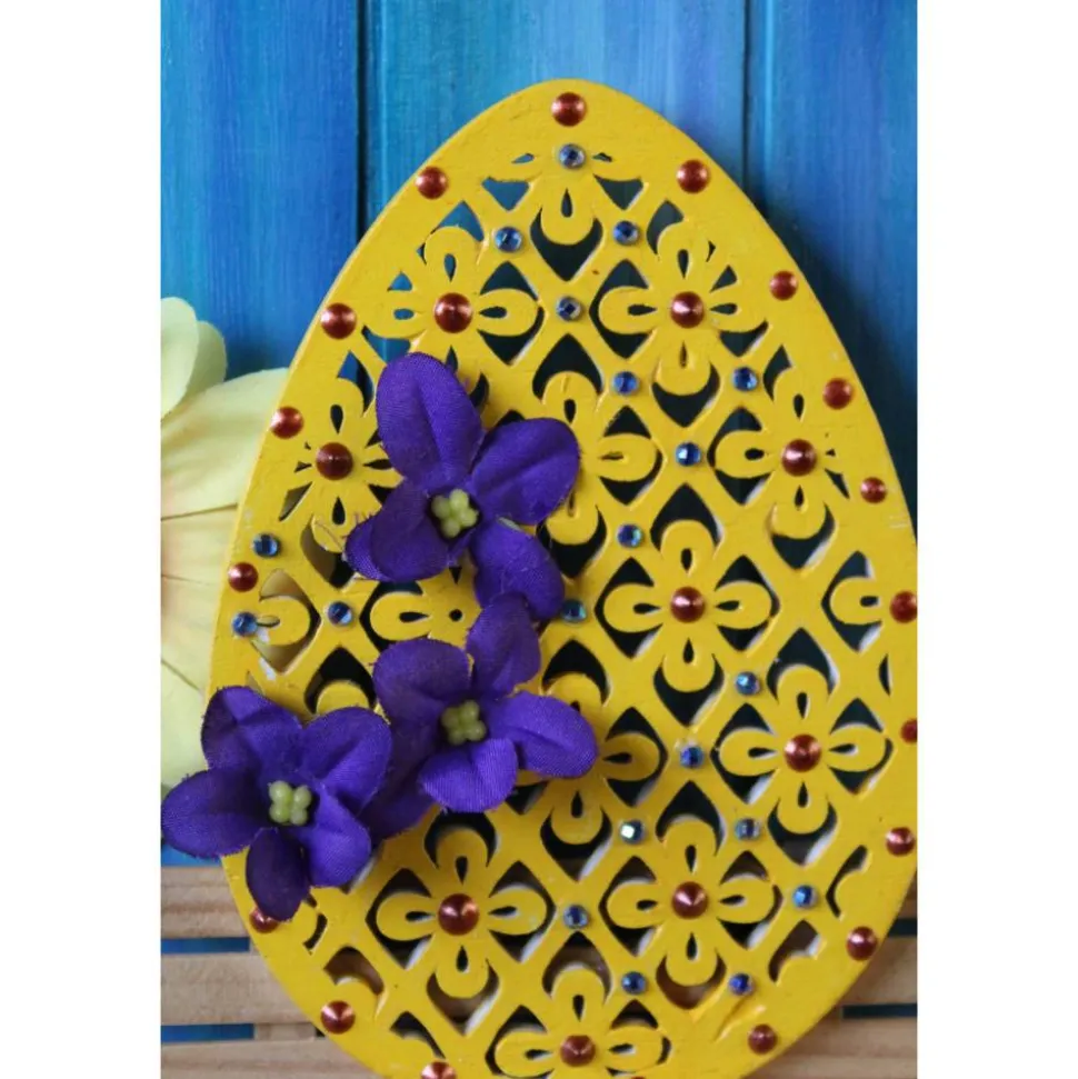 Material: Kunststoff, Holz, Acrylfarben, Kunstblumen, Glitzersteinchen