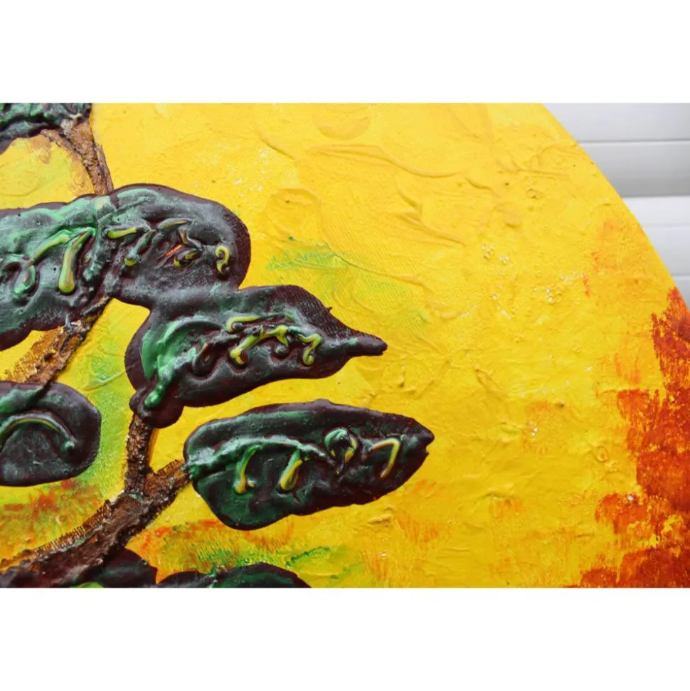 Das Acrylbild wurde seitlich auch mit Farbe bearbeitet, kann also ohne zusätzlichen Rahmen hängen.