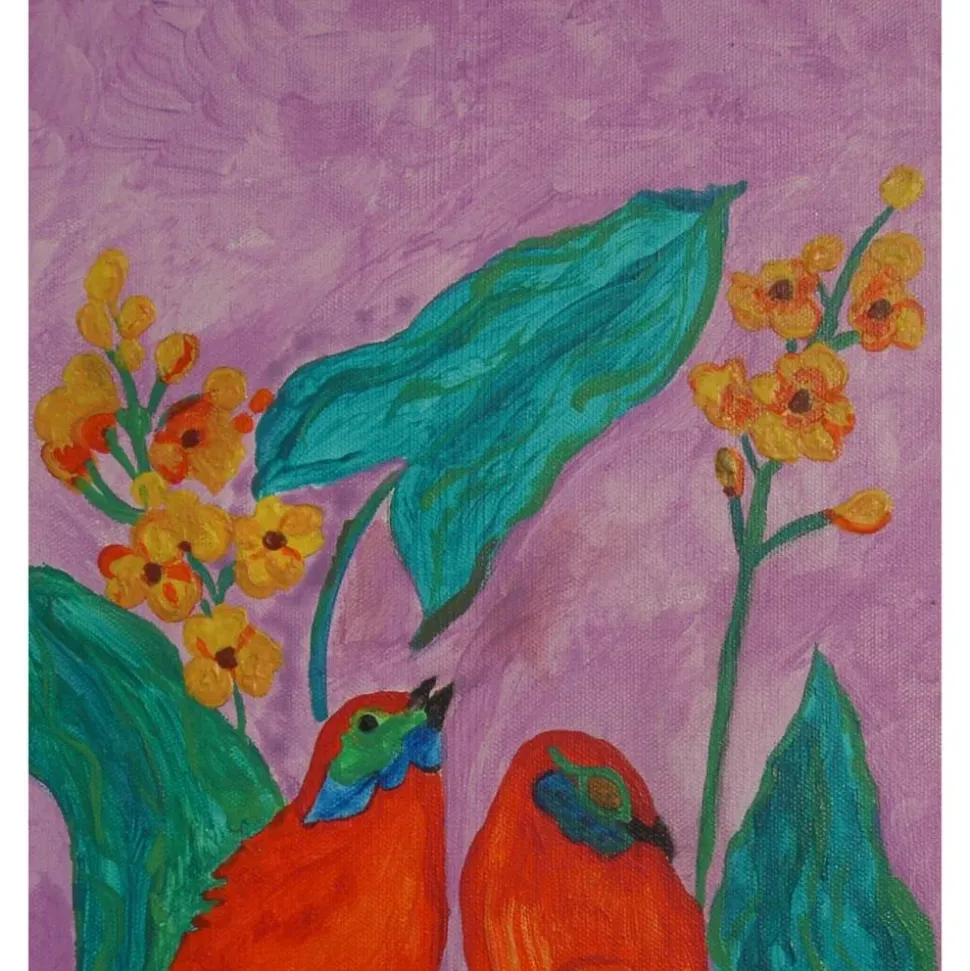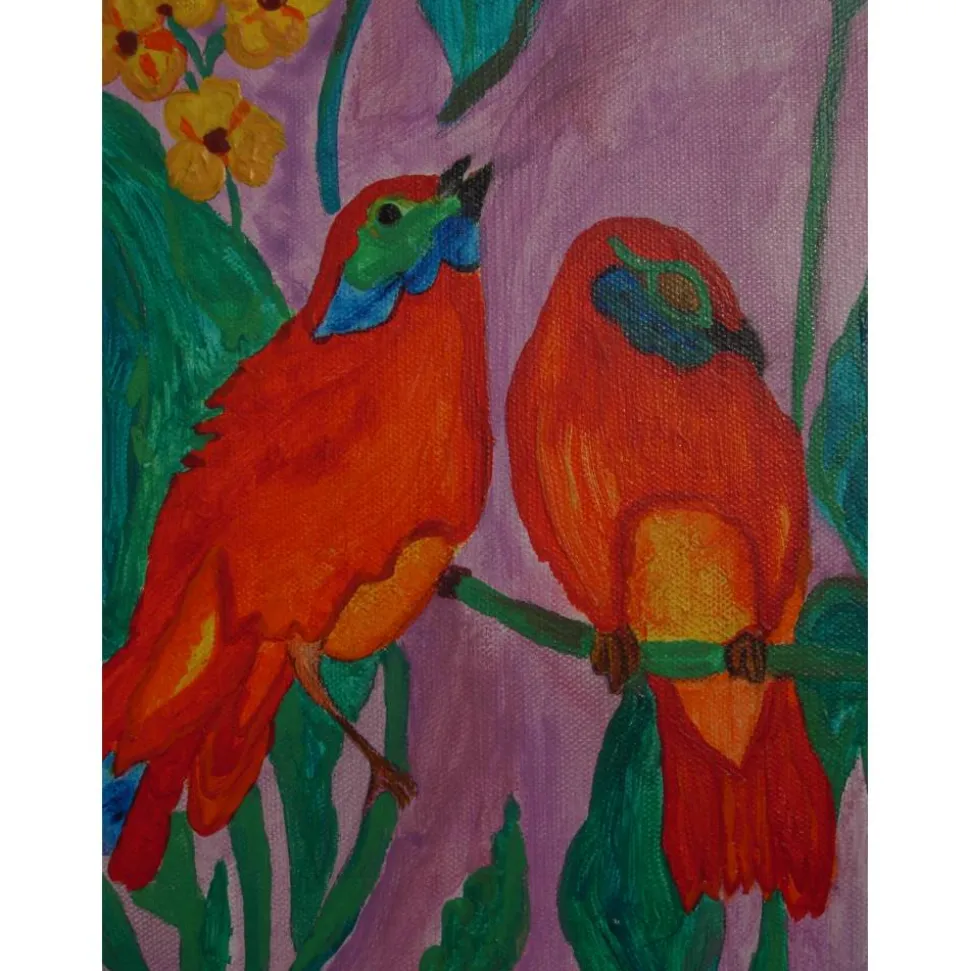 Acrylfarbe auf einem, mit Leinwand bezogenen, Keilrahmen in leuchtenden Farben.
