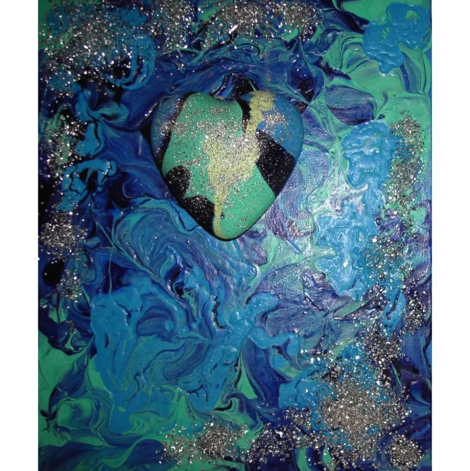 Acrylfarben auf einem Keilrahmen, mit einem Herz in der Mitte. Schön gestaltet mit viel Glitter. Zauberhafte Gestaltung als Deko für Ihre Wohnung oder als kleine Liebeserklärung für Ihren Schatz ;)!