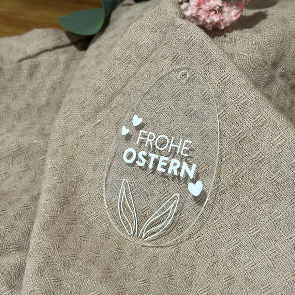 Ob am Osterstrauch, als Fensterdeko oder als liebevolles Geschenk – dieses Acrylglas-Ei bringt eine moderne und festliche Note in dein Zuhause. Dank der dezenten Bohrung lässt sich der Anhänger mühelos aufhängen und vielseitig dekorieren.