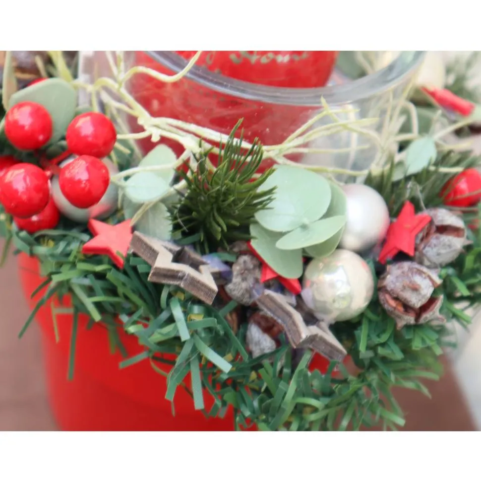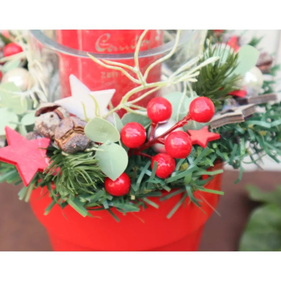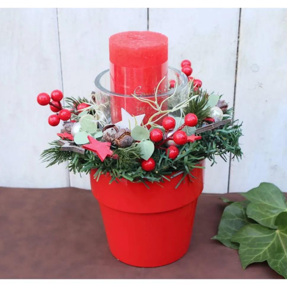 Material: Keramikschale, Kerze, künstliches Grün, Dekorationen, Glas