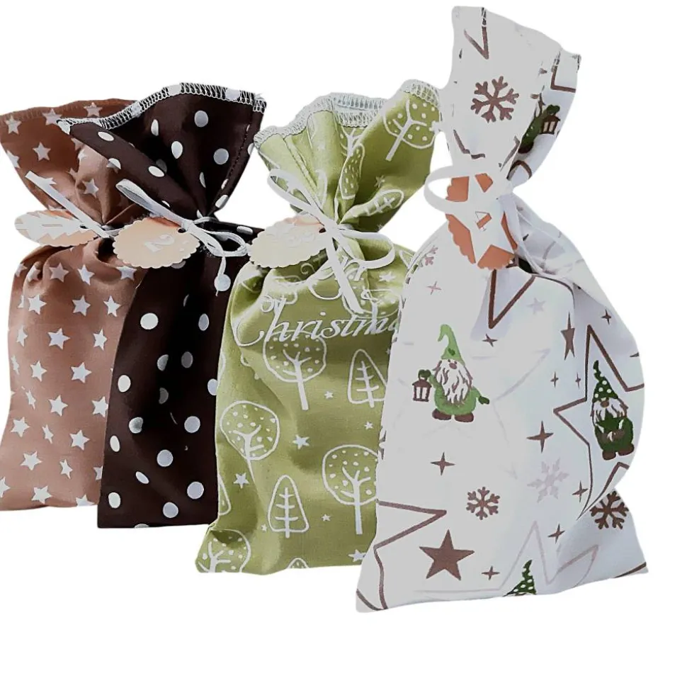 24 Säckchen aus 100% Baumwolle ca. 22 x 11 cm pro Säckchen mit folgenden Farben: