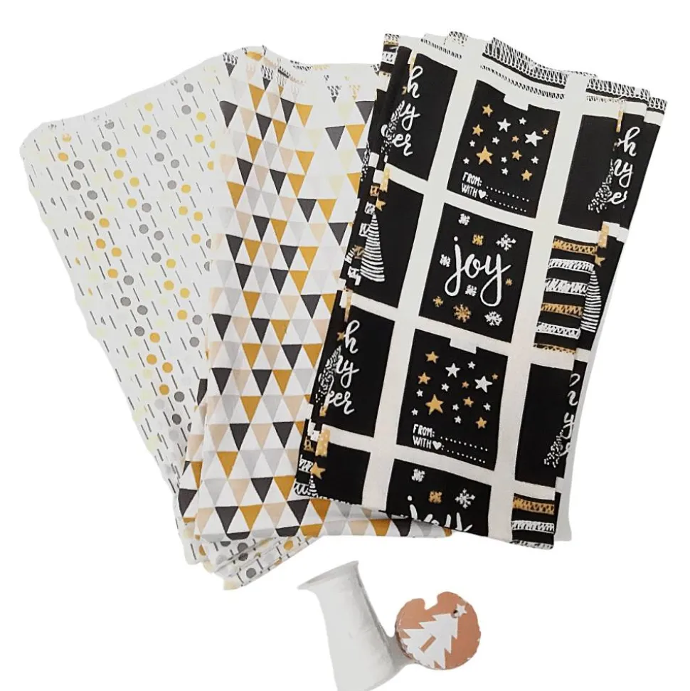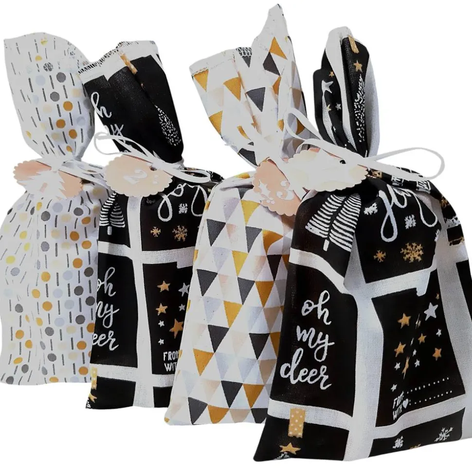– 8 schwarz/ weiße Säckchen mit Kachelmuster und Weihnachtsmotiven