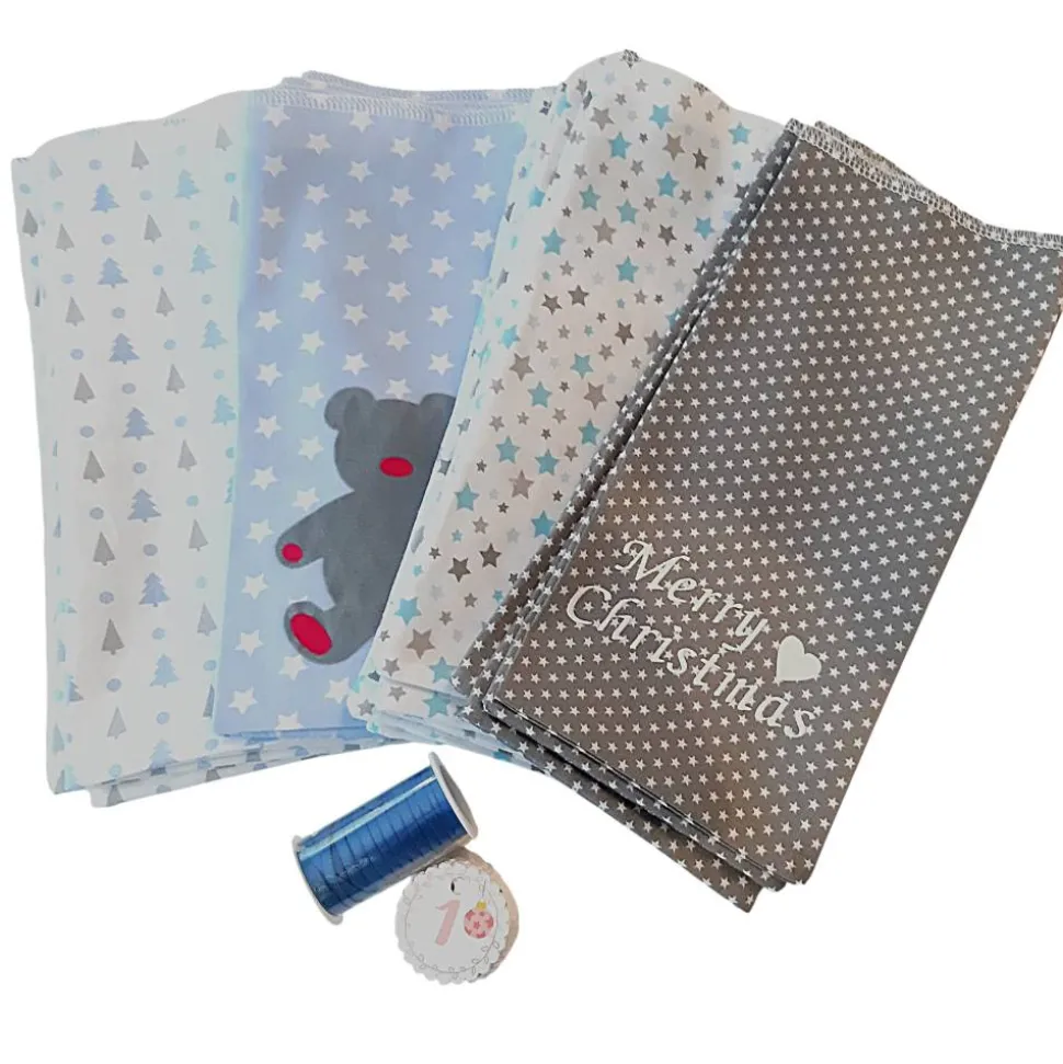 – 6 blaue Säckchen mit weißen Sternchen