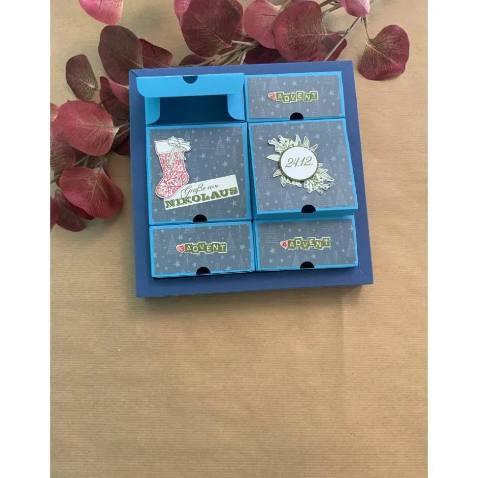 Dann biete ich dir hier einen selbst gemachten Adventskalender an, der für die 4 Adventssonntage + Nikolaus & Heiligabend gedacht ist. Für die Adventssonntage sind die Schachtel kleiner gehalten als für die anderen zwei Ereignisreichen Tage. Aber es passt trotzdem so allerhand hinein. Alle 6 Schachteln, werden zusammen in einen Rahmen gehalten, die man darin verschieden anordnen kann. Den Rahmen, kann man wenn man möchte, nach den Feiertagen als Bilderrahmen verwenden.