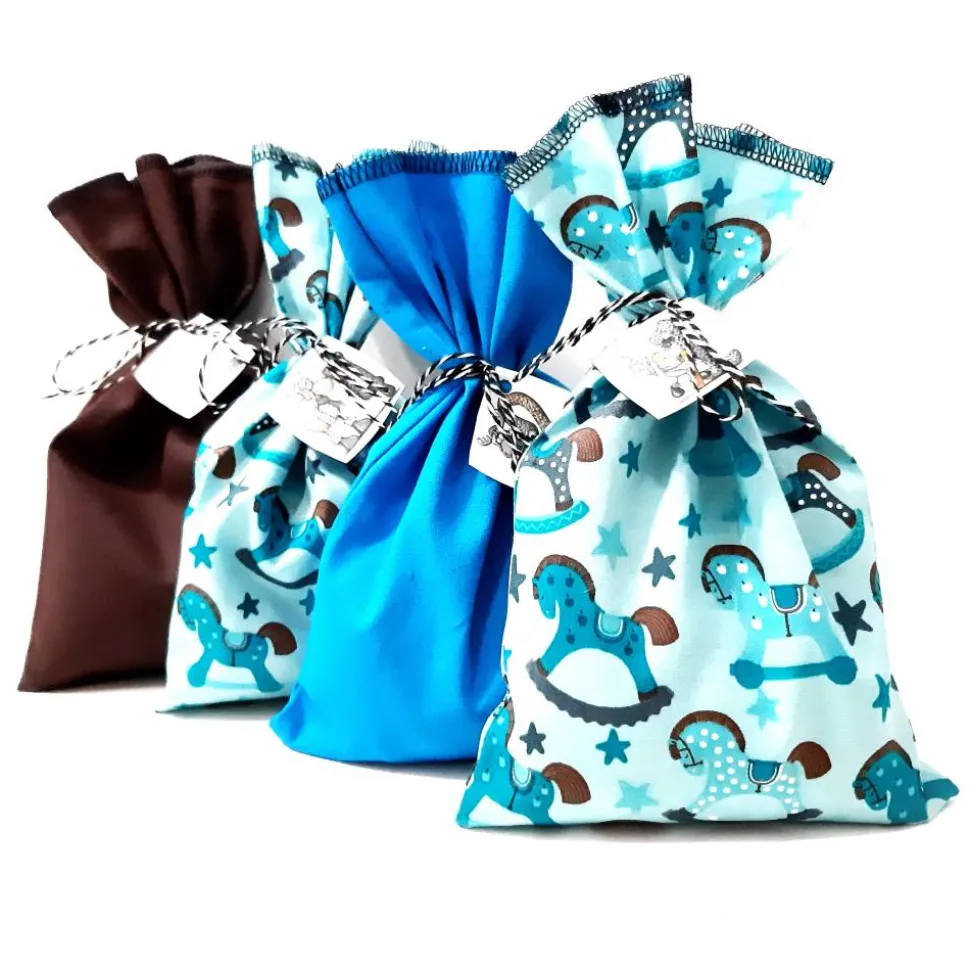 – 8 türkise Säckchen mit Schaukelpferd Motiv
