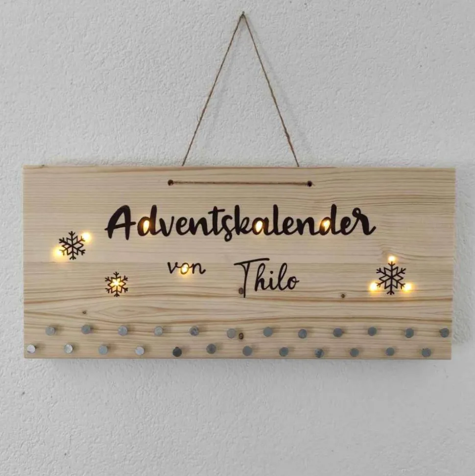 – Komplettpaket Holzschild mit Säckchen und Aufkleber + LED-Lichterkette