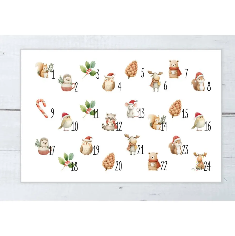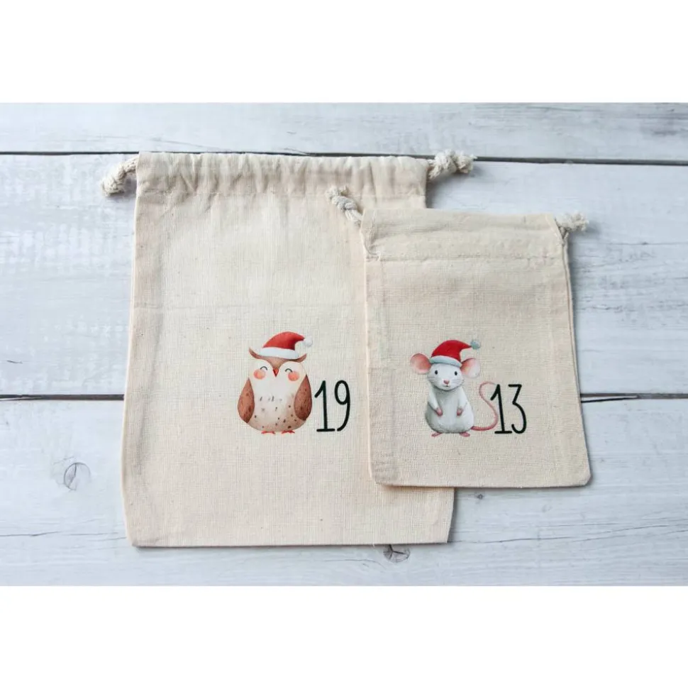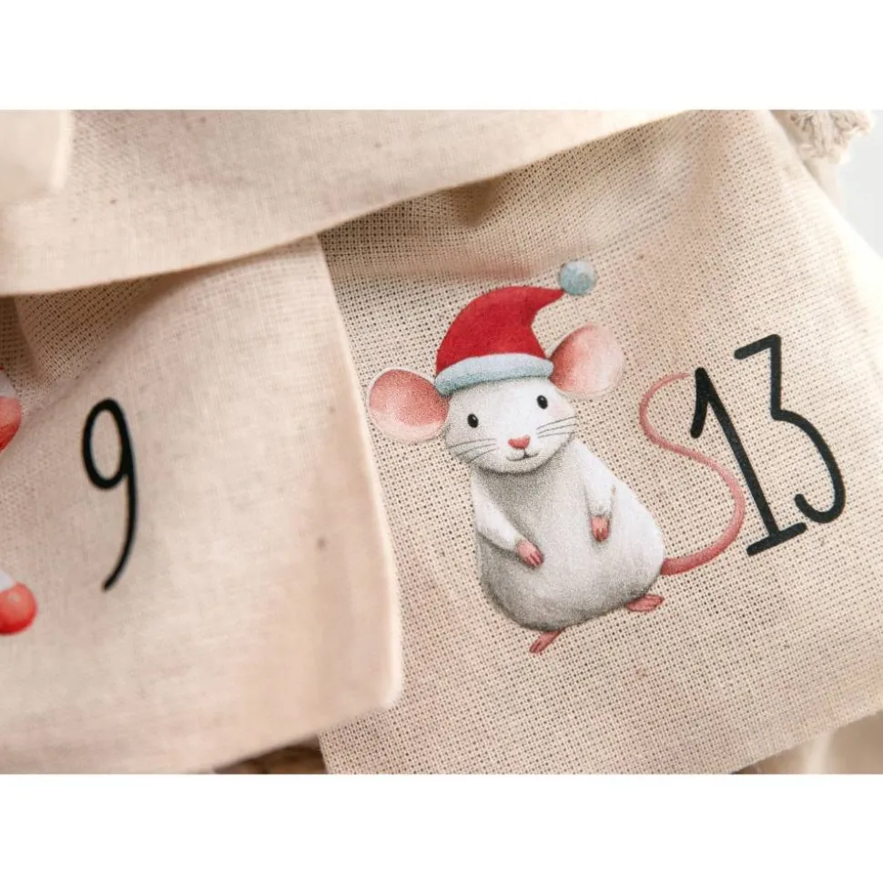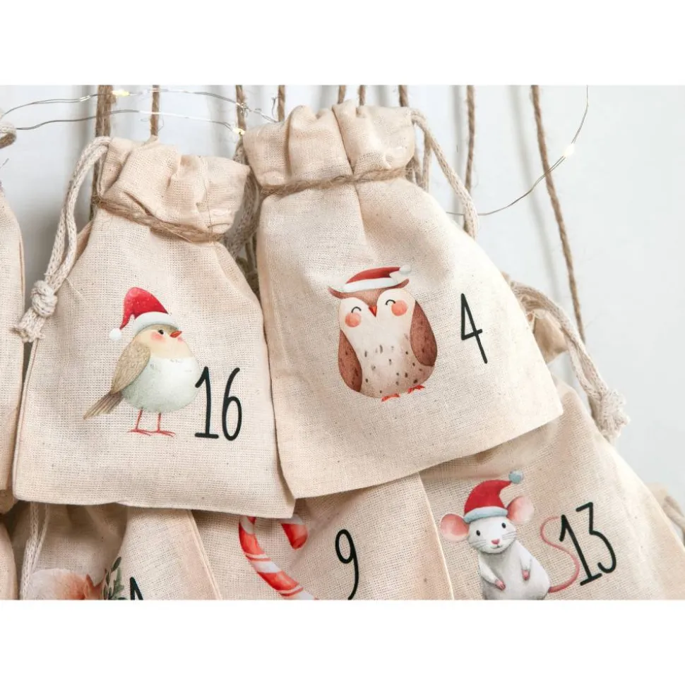 Diese 24 Adventssäckchen aus 100 % Baumwolle sind mit liebevollenWaldtier-Motiven und den Zahlen 1–24 bedruckt. Sie sind stabil, weich und idealfür Familien, die einen schlichten, skandinavischen Look mögen.