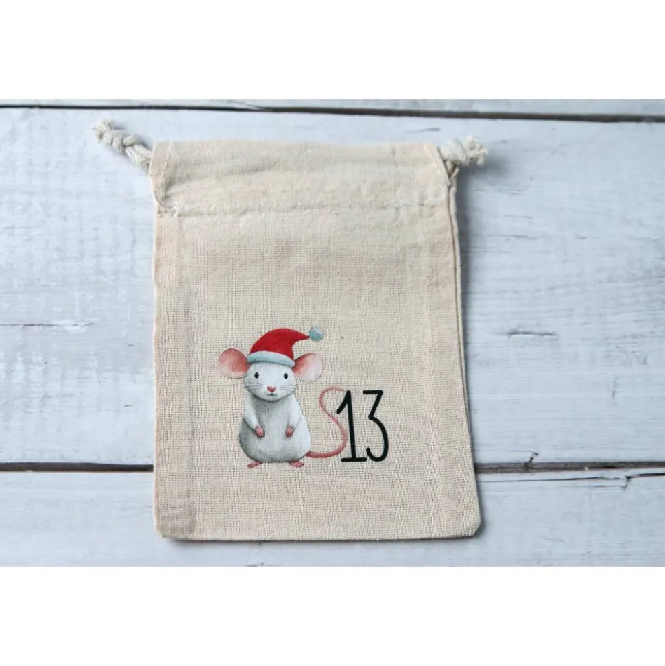 - 24 bedruckte Baumwollbeutel (Variante frei wählbar), ohne Inhalt/Deko
