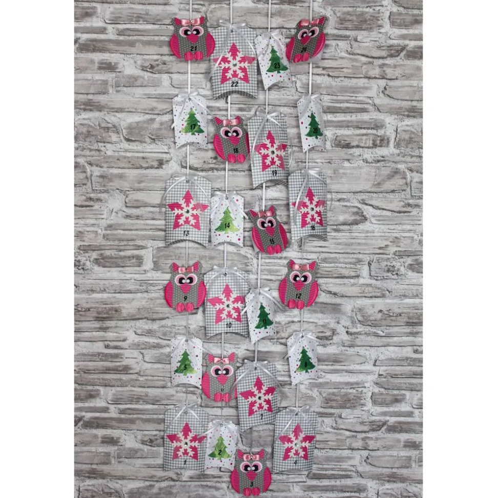 Je nach Bestand können kleine Details wie Schmucksteine, Schleifenband, Zahlen usw. in Art und Farbe variieren, aber immer passend zum Adventskalender.