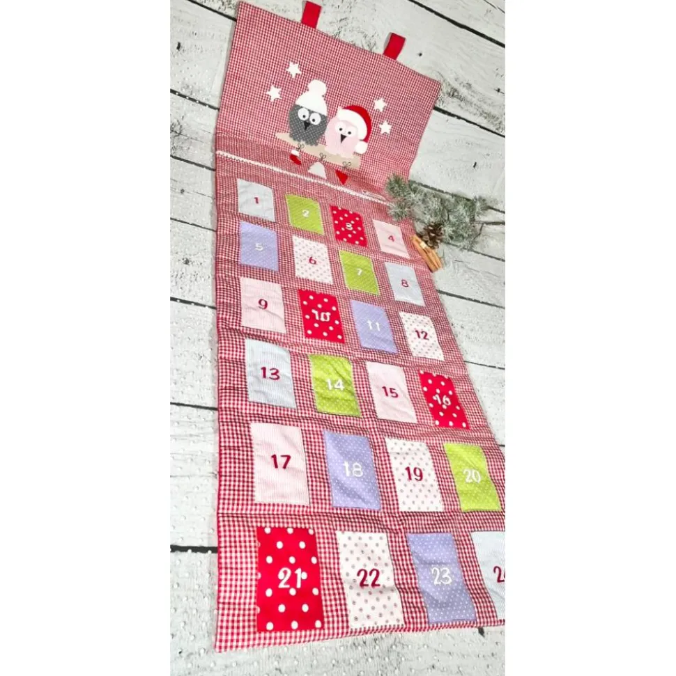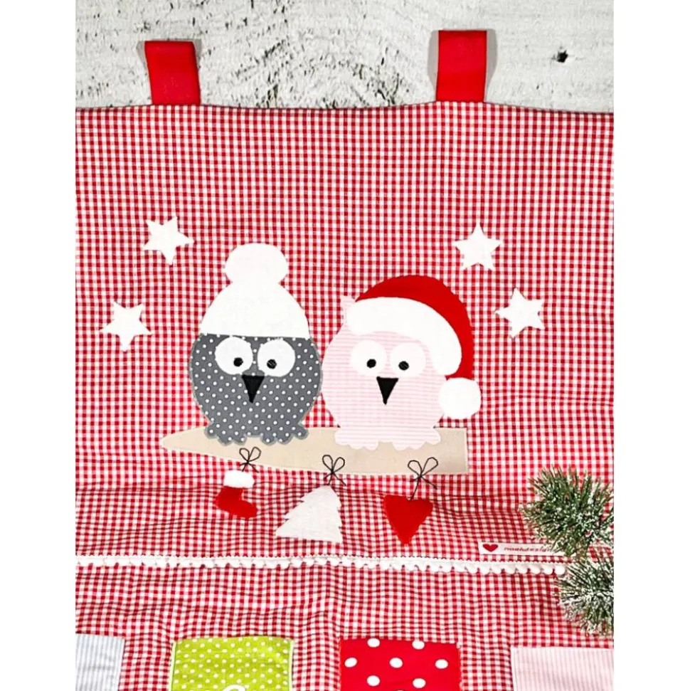Adventskalender Eulen Eulenliebe Stoff rot Vichy sofort verfügbar keine Versandkosten