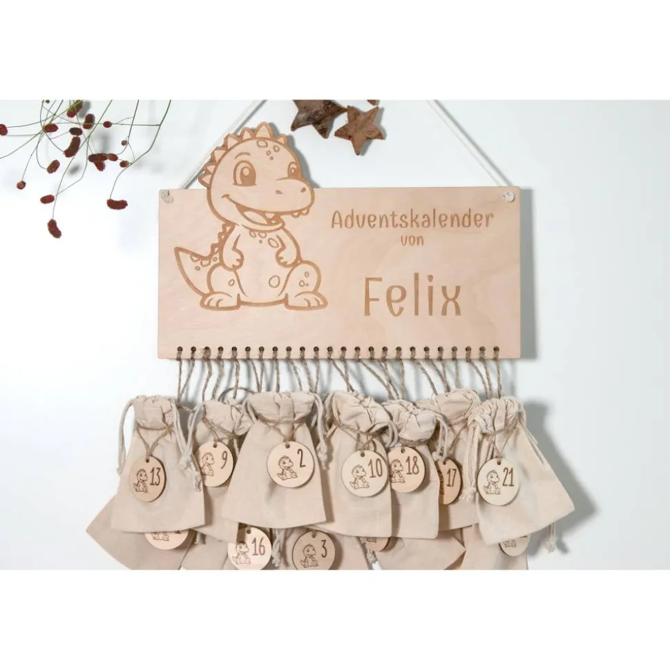 Der fröhliche Drache begleitet Kinder durch den Dezember: natürlich, schlichtund jedes Jahr wieder schön. Das Brett wird mit dem gewünschten Namen graviertund kommt inklusive 65 cm Baumwollschnur zum Aufhängen. Gefertigt aus 4 mmBirkensperrholz, sauber gelasert und sorgfältig geschliffen – langlebig undstabil für viele Adventszeiten.