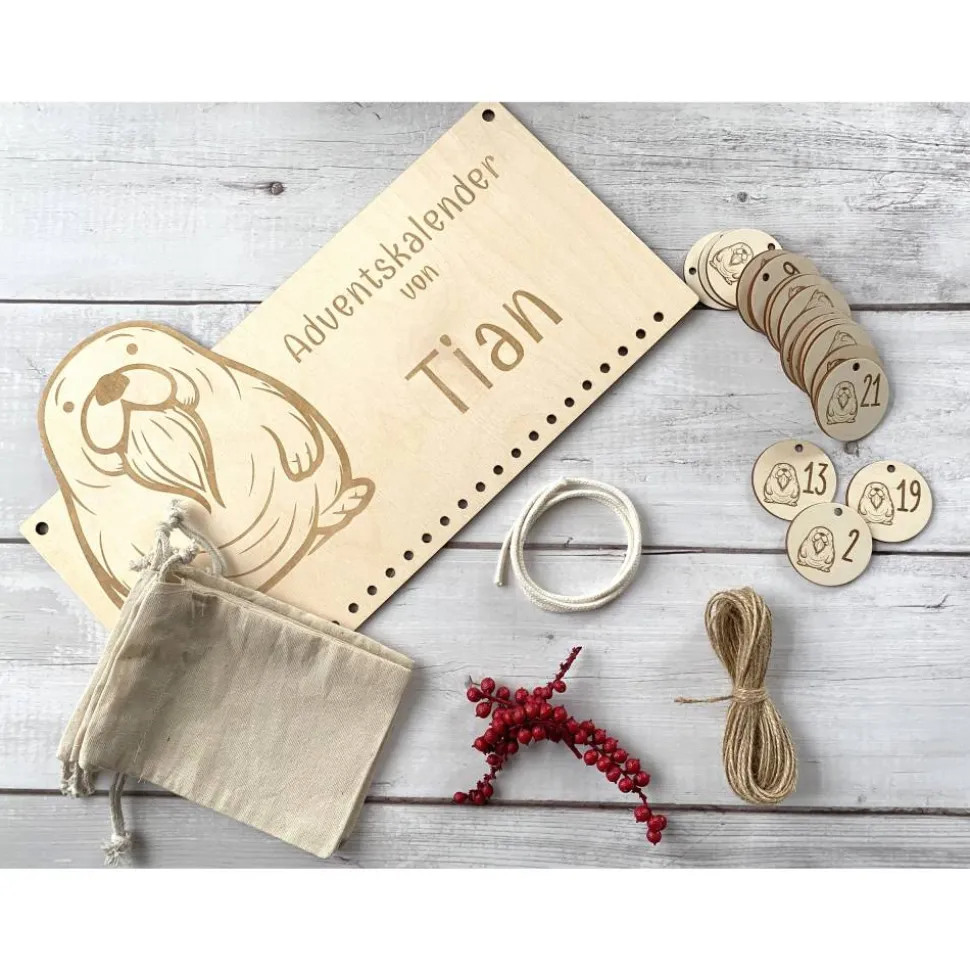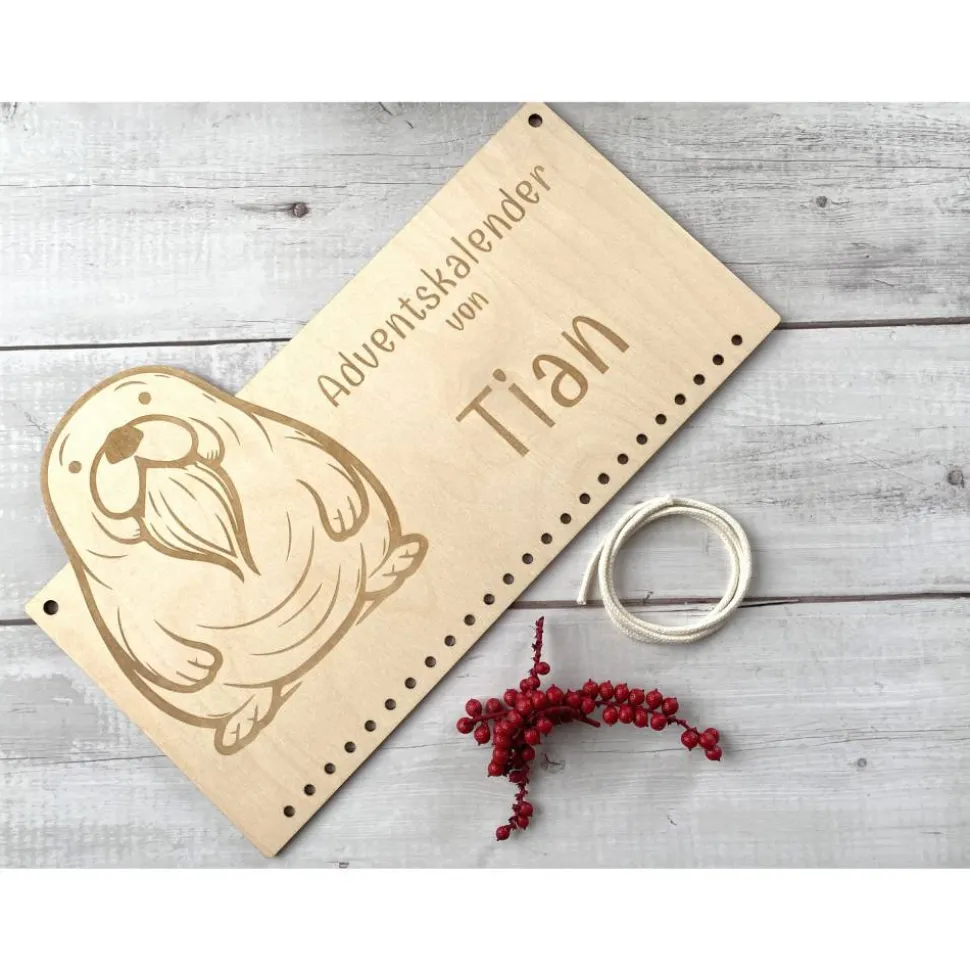 • Optional erhältst du ein Zahlen-Set: 24 runde Anhänger aus 3 mm Birke (Ø ca.4,5 cm) mit Seelöwen-Gravur und 4 mm Aufhängeloch.