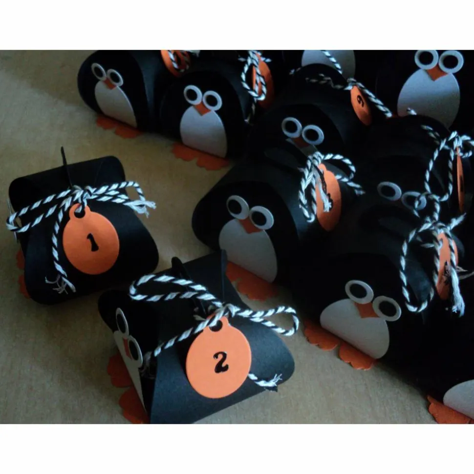 Hier seht ihr einen schönen Adventskalender mit 24 stück Zierschachteln mit süssen Pinguinen für Kinder oder Erwachsene