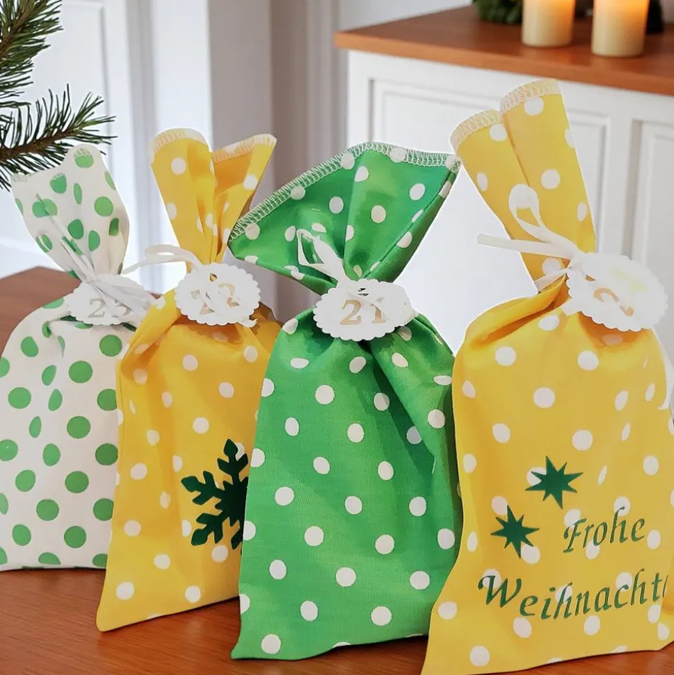 – 8 Säckchen weiß mit grünen Punkten, 100% Baumwolle