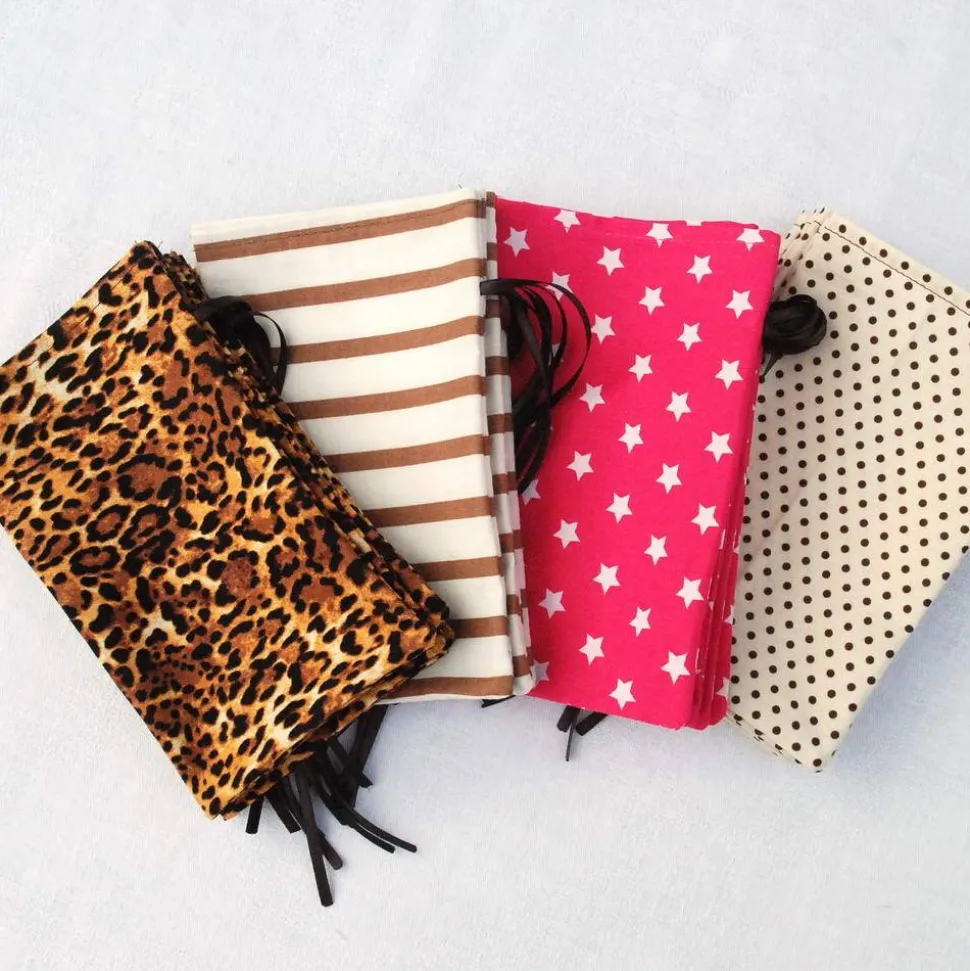 Gebunden werden die Säckchen mit braunen Satinbändchen. Damit diese nicht verloren gehen, sind sie in der seitlichen Naht eingenäht.