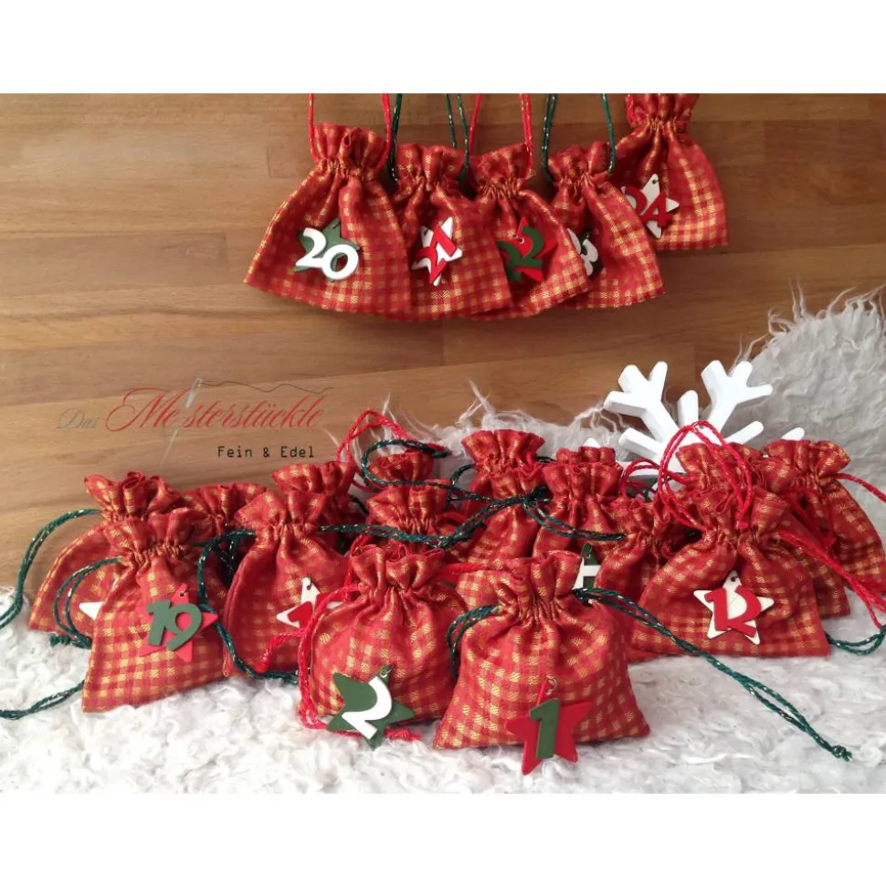 Unsere Adventskalendersäckchen gibt es in verschiedenen Ausführungen und werden komplett in Deutschland hergestellt. Sie sind aufwendig, liebevoll und hochwertig verarbeitet und bei guter Pflege jedes Jahr wieder zu verwenden. Dies ist nachhaltig und trägt zum Schutz der Umwelt bei. Handgefertigte Adventskalendersäckchen können ganz individuell befüllt werden.