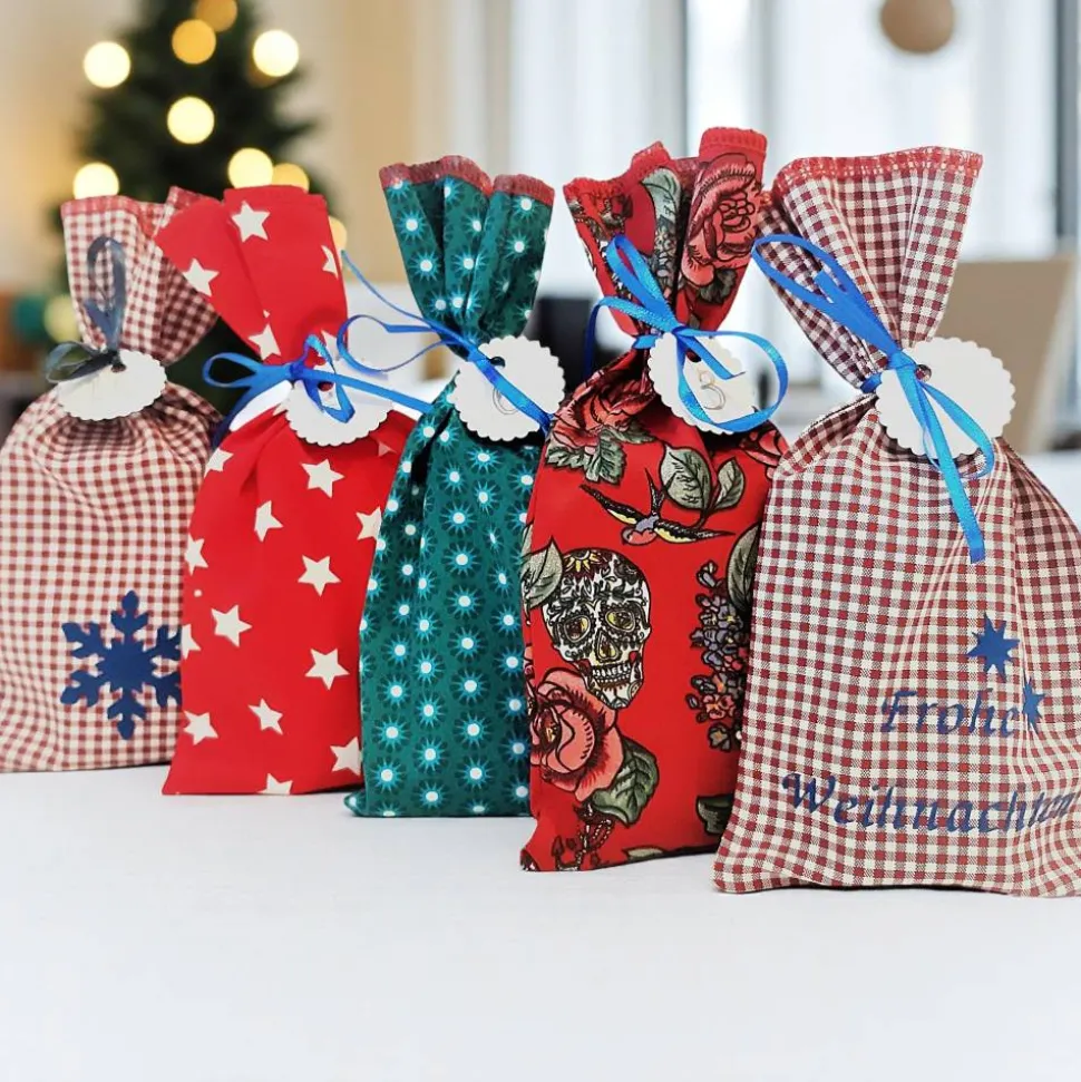 – 6 Säckchen rot mit weißen Sternen, 100% Baumwolle