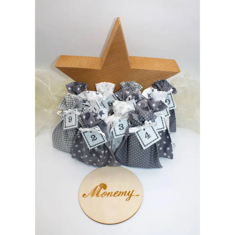 Der Adventskalender ist ohne Inhalt! Die Holzsterne im Hintergrund dienen nur zur Deko und werden nicht verkauft.