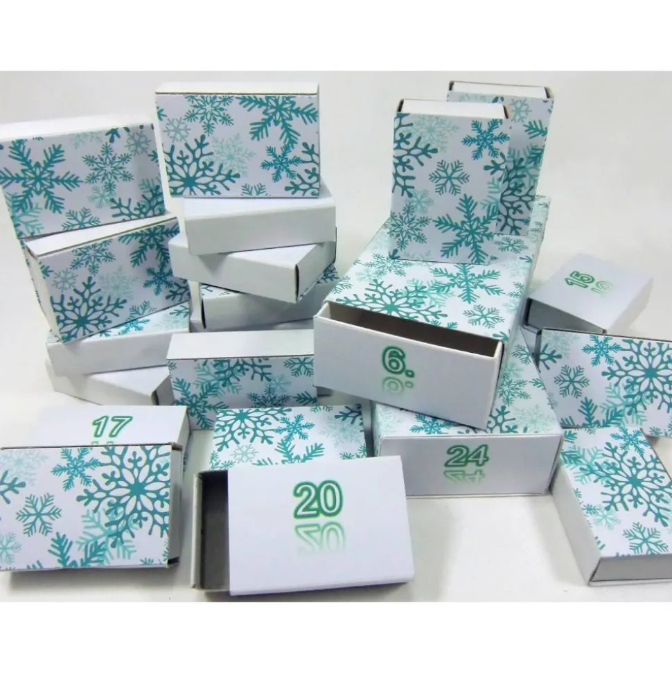 24x kleine plus 2 große Boxen. advent calendar, Eiskristall smaragd-grün auf weiß, Zahlen 1-24.