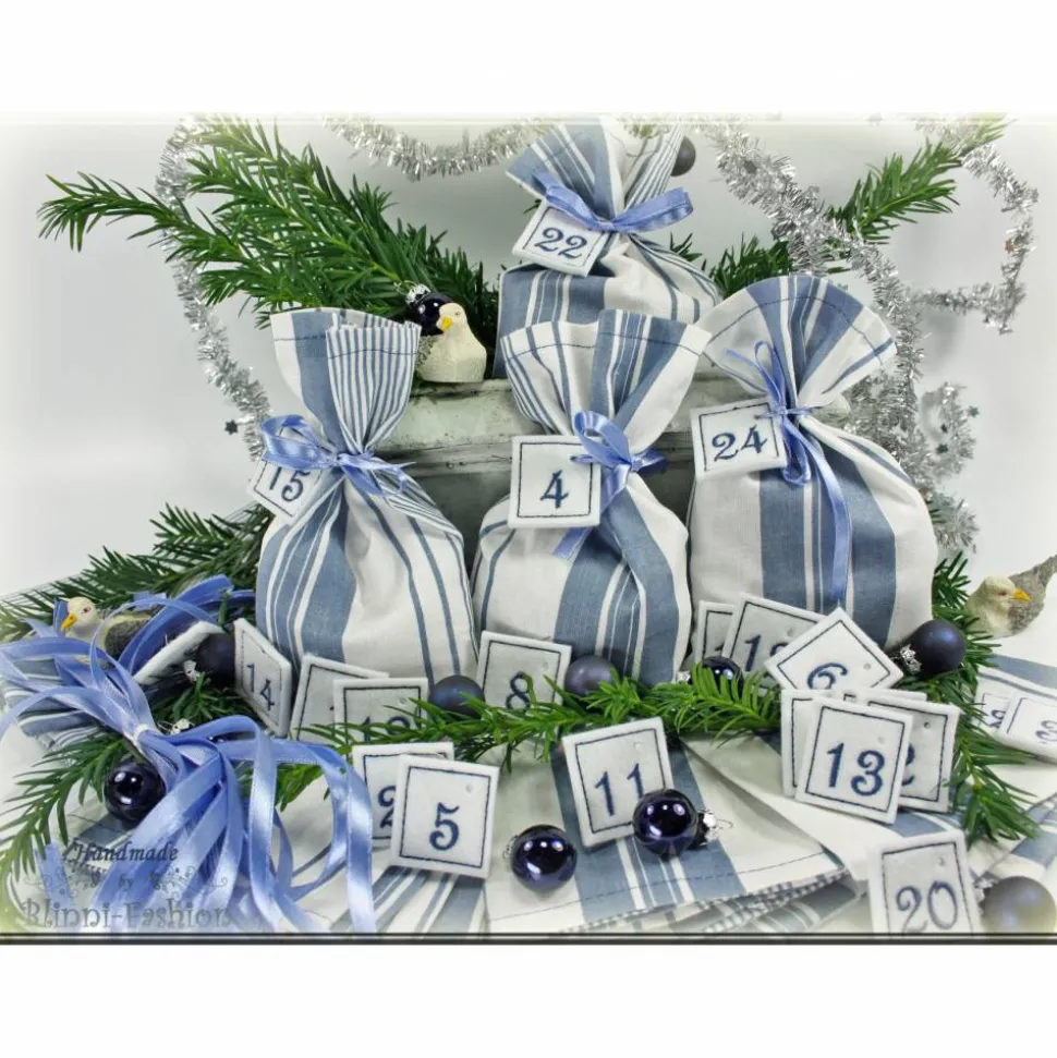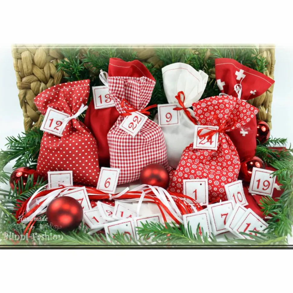 Adventskalender Stoff Säckchen mit gestickten Zahlen für Kinder und Erwachsene, Weihnachten, Advent, verschiedene Farben