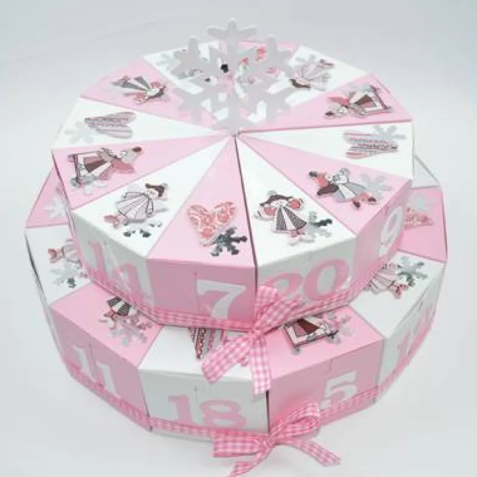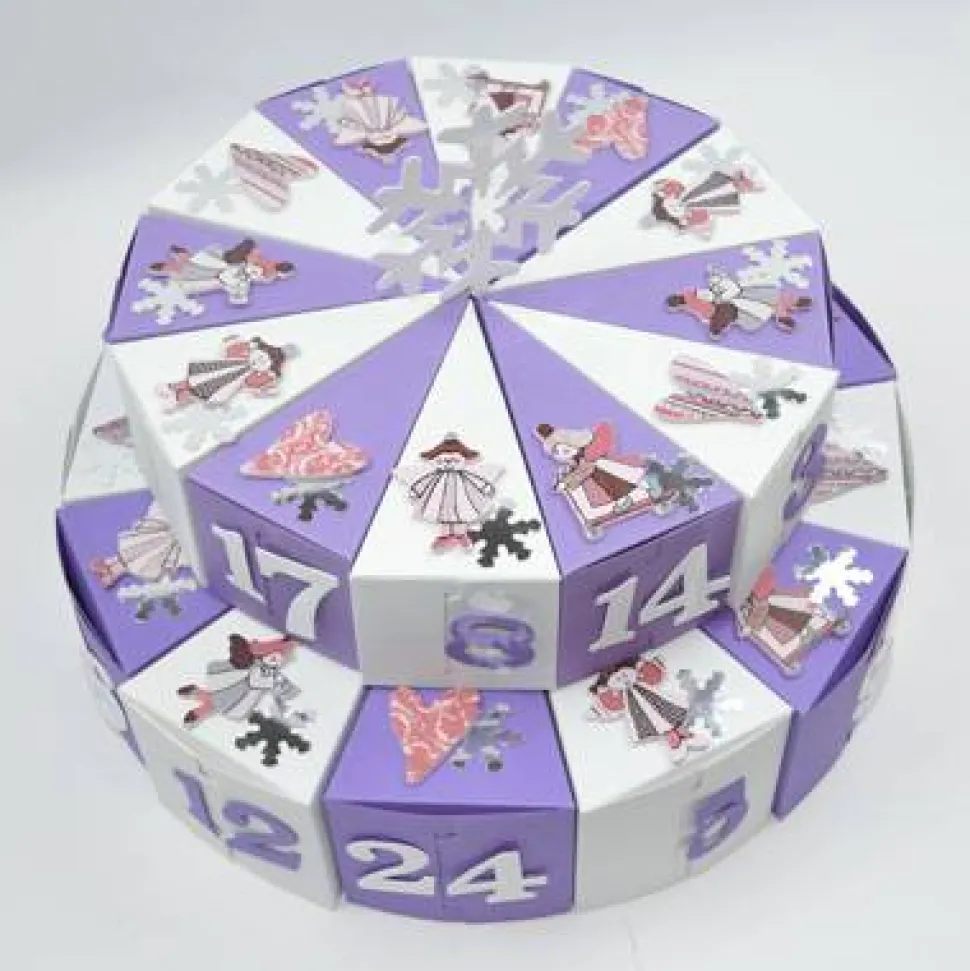 Diese als zweistöckige Torte arrangierte Adventskalender Verpackung ist mit Zahlen von 1 bis 24 versehen, so dass Sie für jeden Tag in der Adventszeit ein separates Geschenkfach haben. Die beiden Stockwerke sind mit einer Band, hübschen Figuren und mit hübschen Motive je nach Thema dekoriert.
