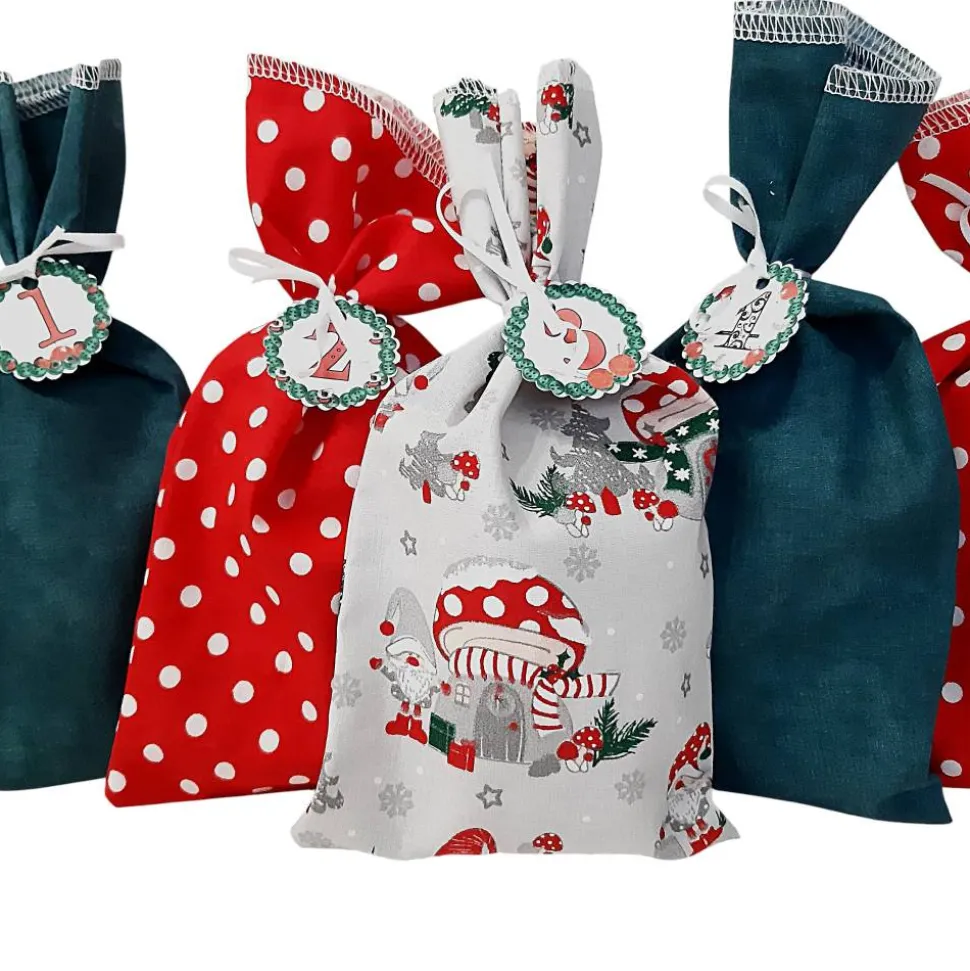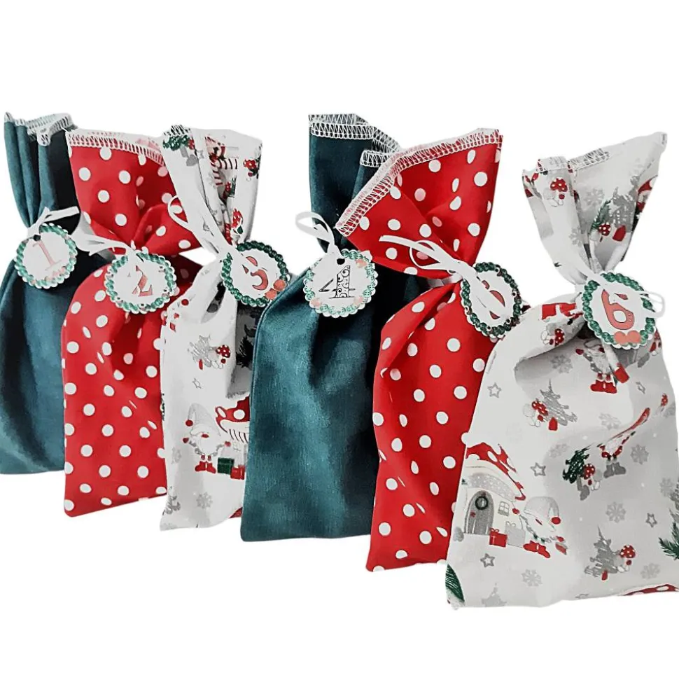 – 8 Säckchen rot mit weißen Punkten, 100% Baumwolle