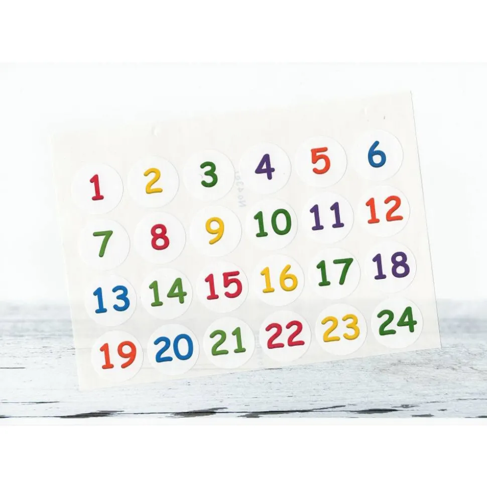 ♥ Die Aufkleber sind WEISS, die Zahlen die Zahlen fröhlich bunt, in rot – gelb – grün – blau – lila