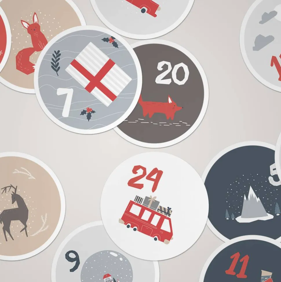 Gestalten Sie einen ganz persönlichen Adventskalender für ihre Liebsten mit unserem liebevoll gestalteten Stickerbogen. Der A4-Bogen enthält 24 runde Aufkleber mit den Zahlen 1 bis 24 und festlichen Motiven im beliebten Scandi Stil. Die Zahlenaufkleber eignen sich perfekt zum verzieren von Geschenken oder zum verschließen von Geschenktüten. Die selbstklebenden Sticker haben einen Durchmesser von 40 mm und haften permanent auf verschiedenen Oberflächen.