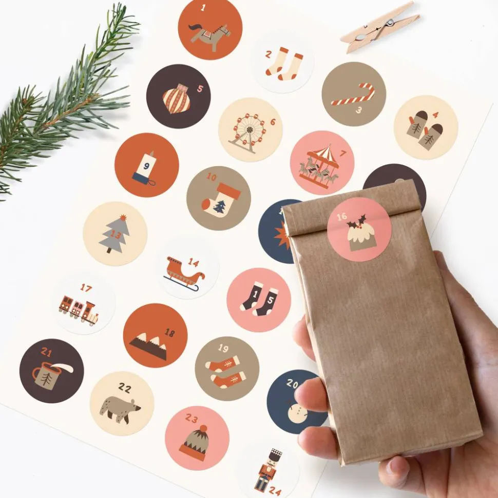 Adventskalender Zahlenaufkleber *Scandi Winter* / 24 runde Aufkleber / ∅ 40 mm