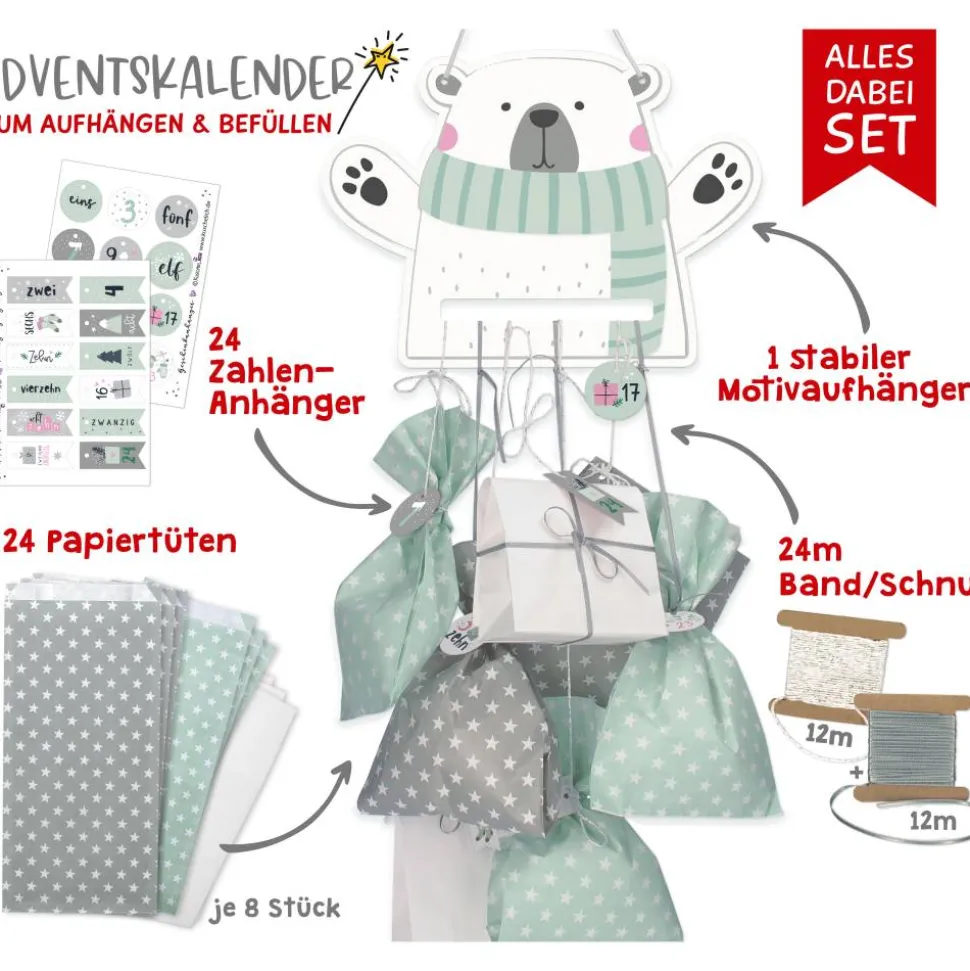 Die hochwertigen Papiertüten lassen sich ganz leicht mit den beiligenden Adventskalenderzahlen verzieren