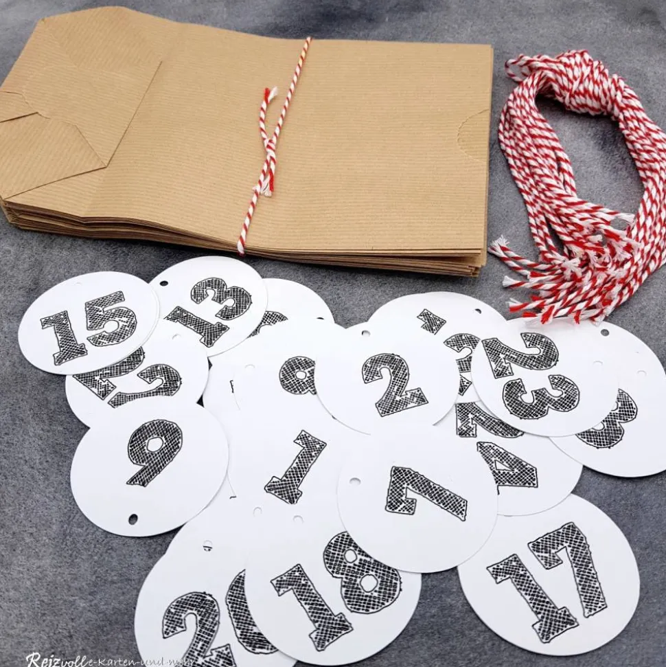 Du fügst nur noch 24 Kleinigkeiten hinzu und kannst direkt mit dem Packen starten. Die Beutel bieten ausreichend Platz für Süßigkeiten, kleine Geschenke oder persönliche Botschaften. Die Kombination aus Kraftpapier, modernen Zahlenanhängern und klassischen Kordeln sorgt für einen reizvollen, handgemachten Look.