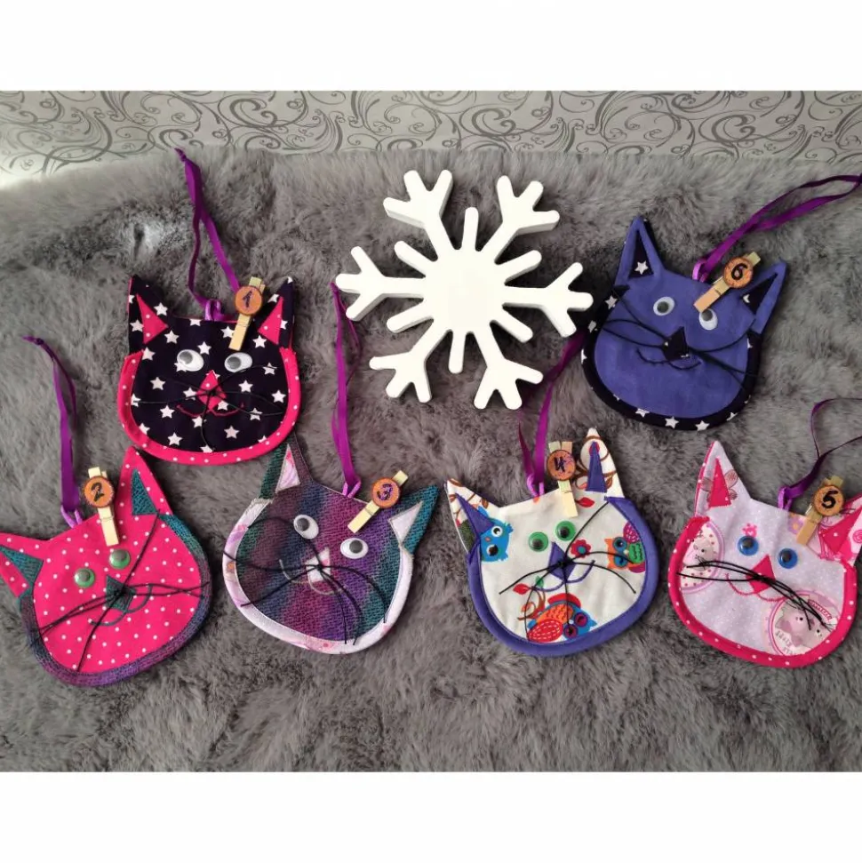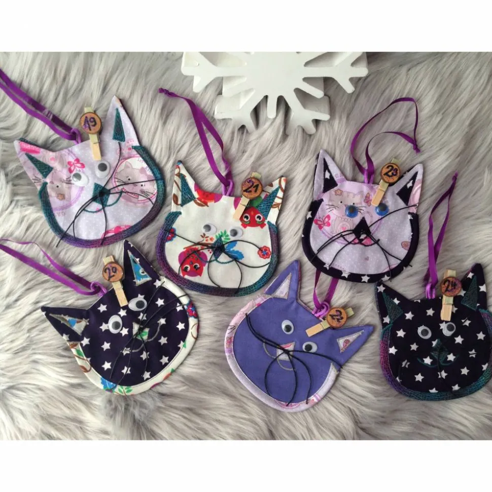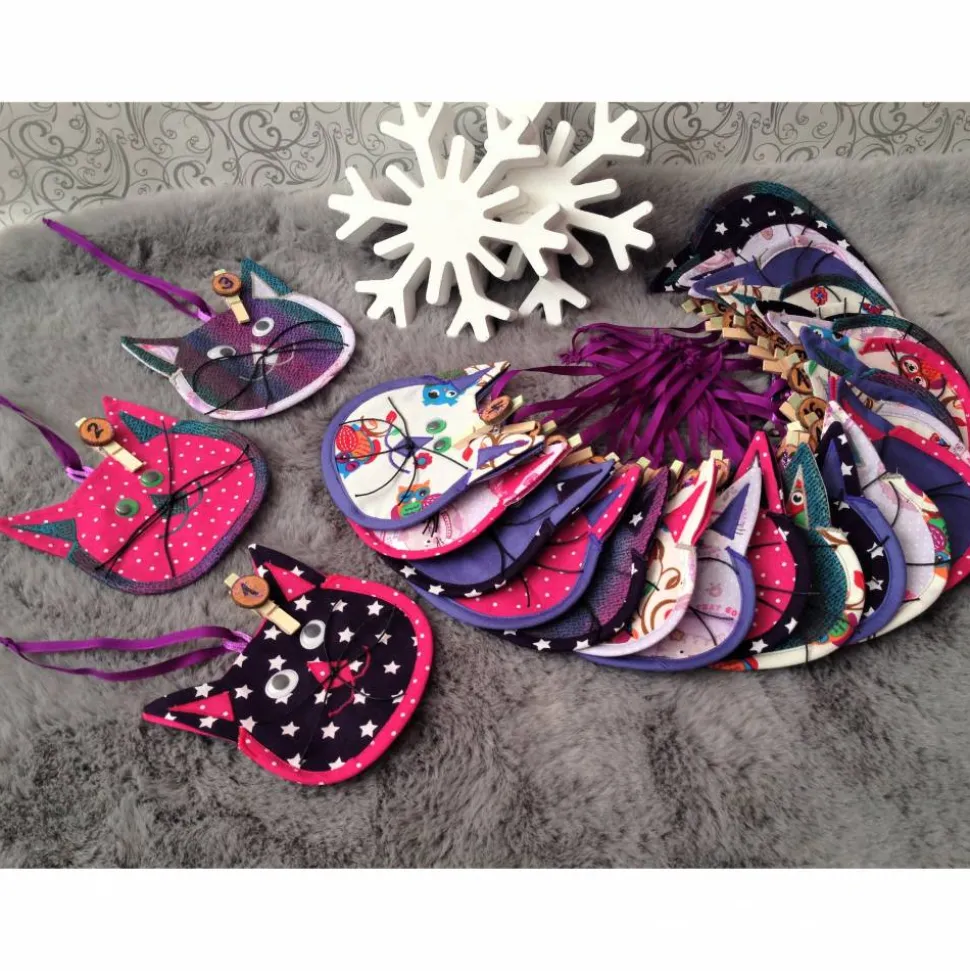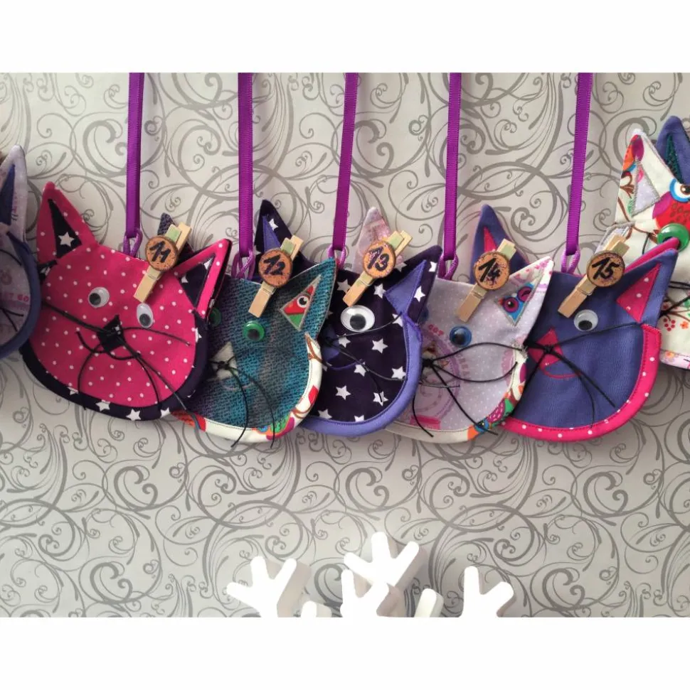 24 Taschen in Form von Katzen aus 4-fach Stoff zum befüllen.