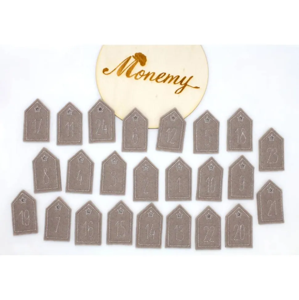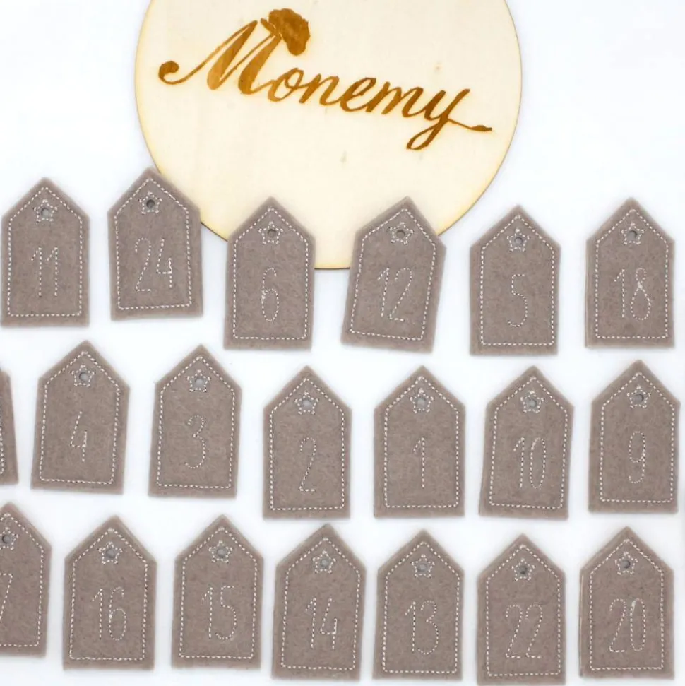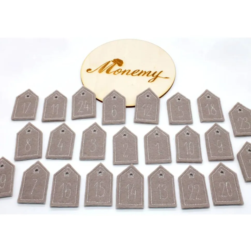 Der Filz ist taupe grau und die Stickfarbe ist hier weiß.