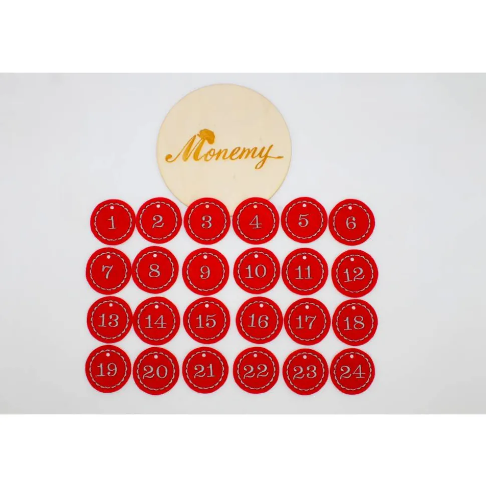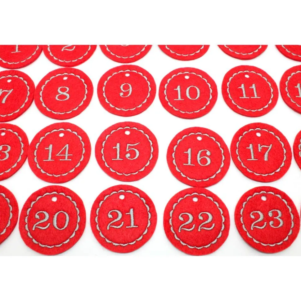 Der Filz ist rot und die Stickfarbe ist hier grau.