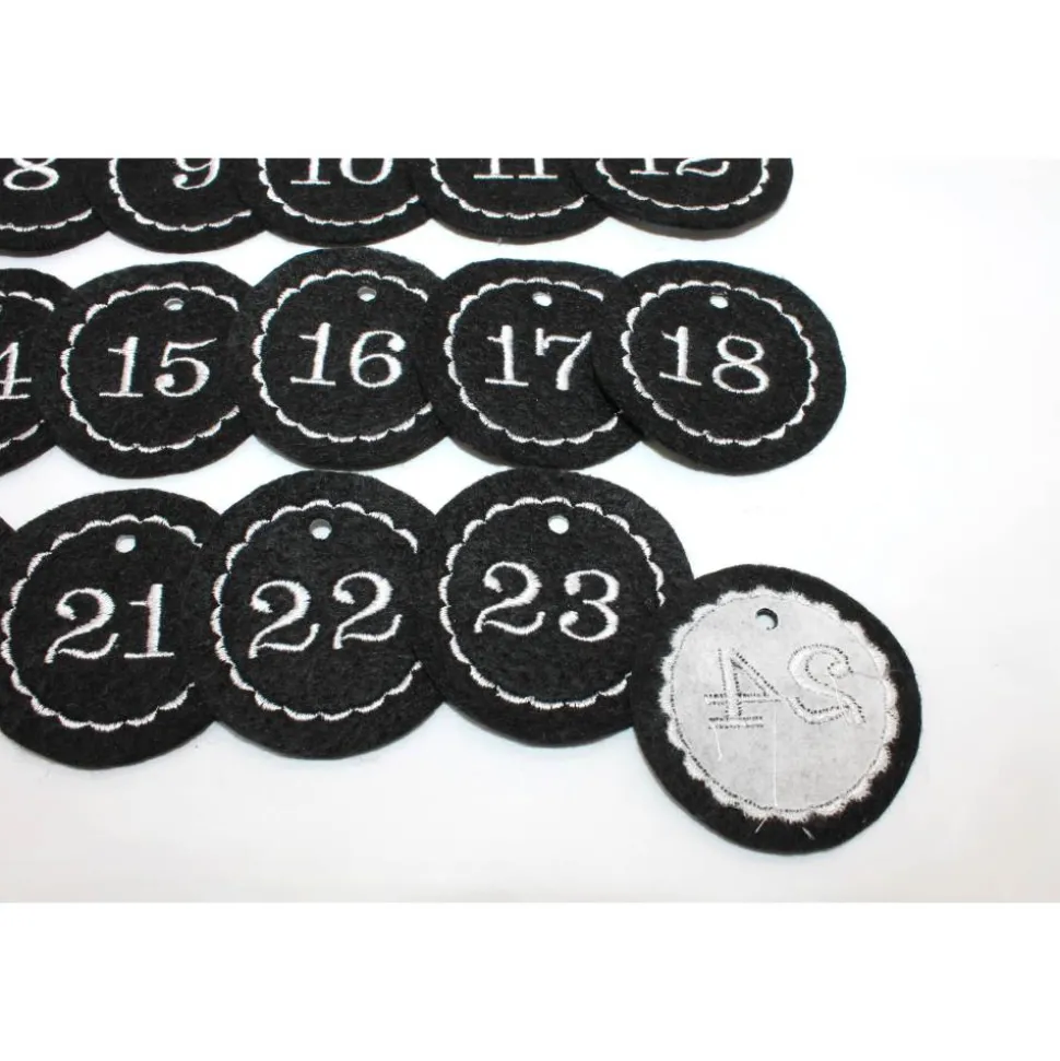 Der Filz ist schwarz und die Stickfarbe ist hier weiß.