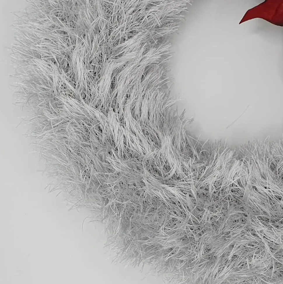 Gefertigt aus silberner kuschliger Wolle und Strohkranz.