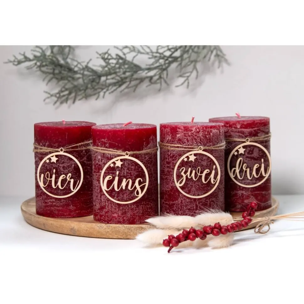 - Die Zahlen 1–4 werden am Adventskranz oder an vier Kerzen befestigt, um die Adventssonntage stilvoll zu zählen.